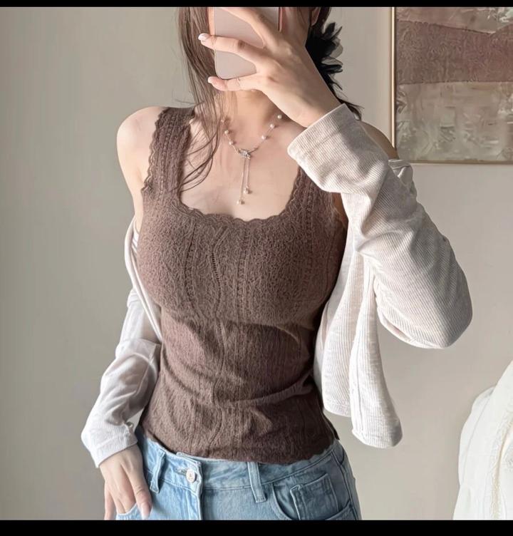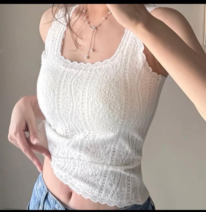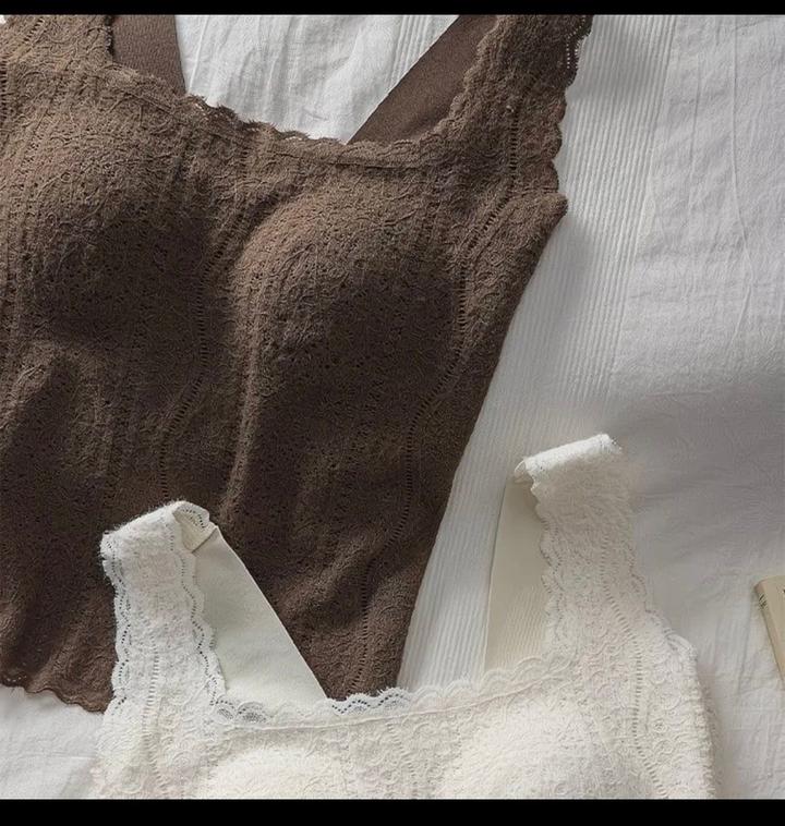 Кружевной топ. Широкие бритальки. Спина однотонная тянется, бесшовный.Топ идет с вшитым бюстом, что очень удобно для повседневной жизни. Артикул: 590519