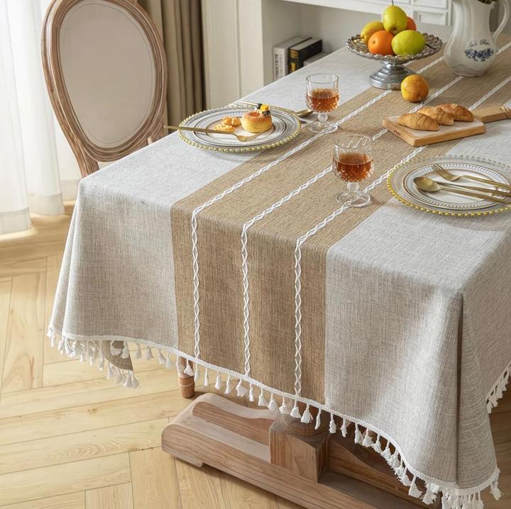 Водоотталкивающая скатерть Коричнево-бежевого цвета, новинка 2026 года. Стильная скатерть для уютного дома! Качество изделия выполнено из плотной ткани с декоративными кисточками на концах.Водоотталкивающая пропитка защищает поверхность скатерти, делая ее непромокаемой и водостойкой. Можно стирать в стиральной машинке и гладить утюжком.Качественная обработка швов. Размер скатерти 300*140 см Отлично подходит для стола 2,60*140 см Артикул: 590536