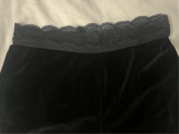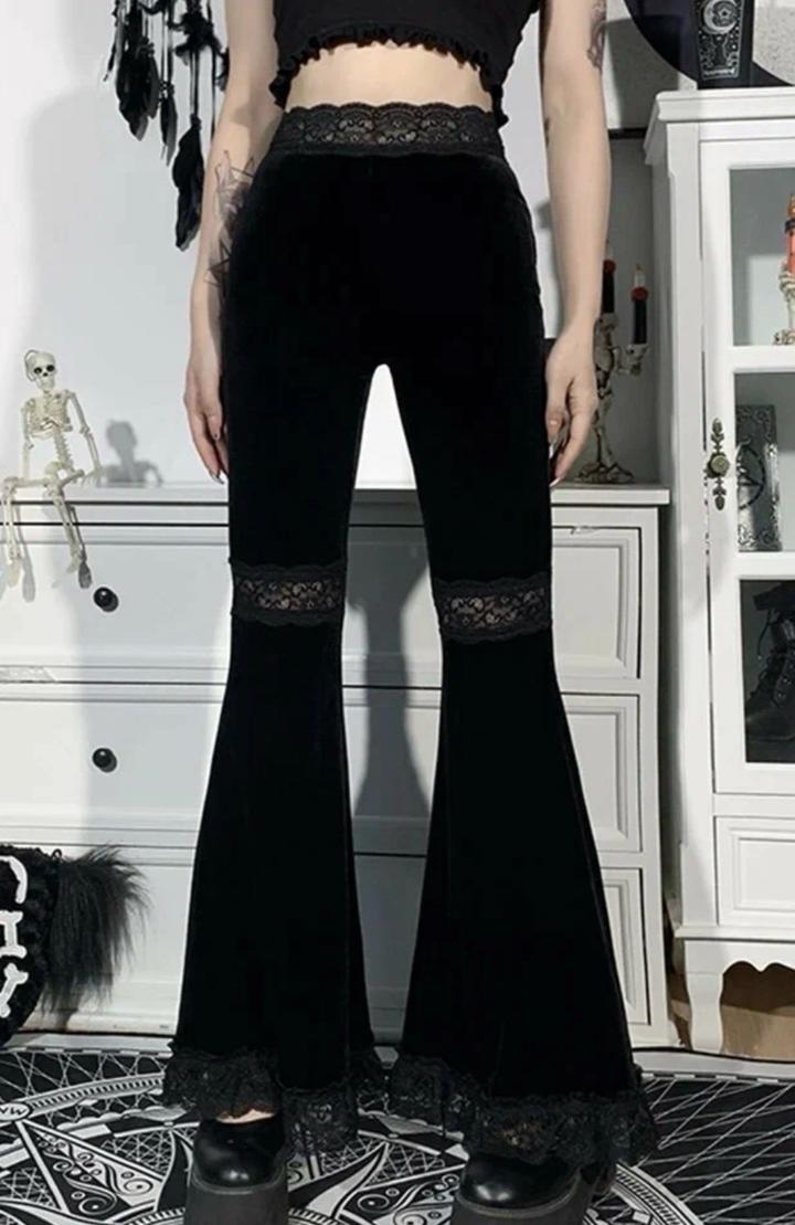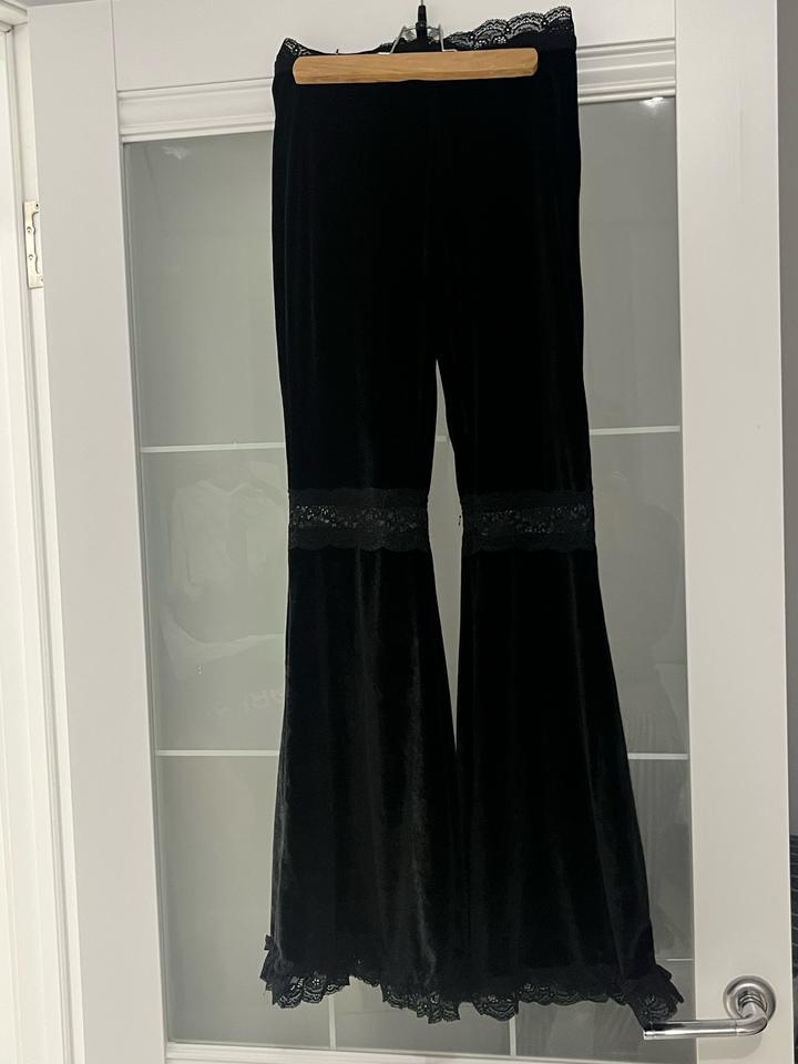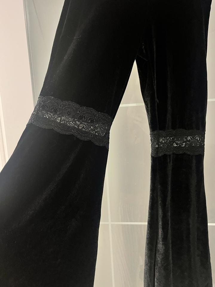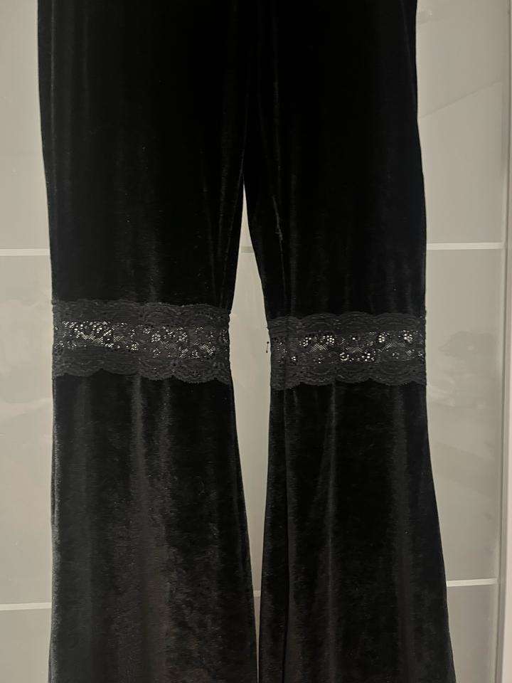 чёрные бархатные брюки-клеш с кружевом особенности модели — немнущийся материал Артикул: 590548
