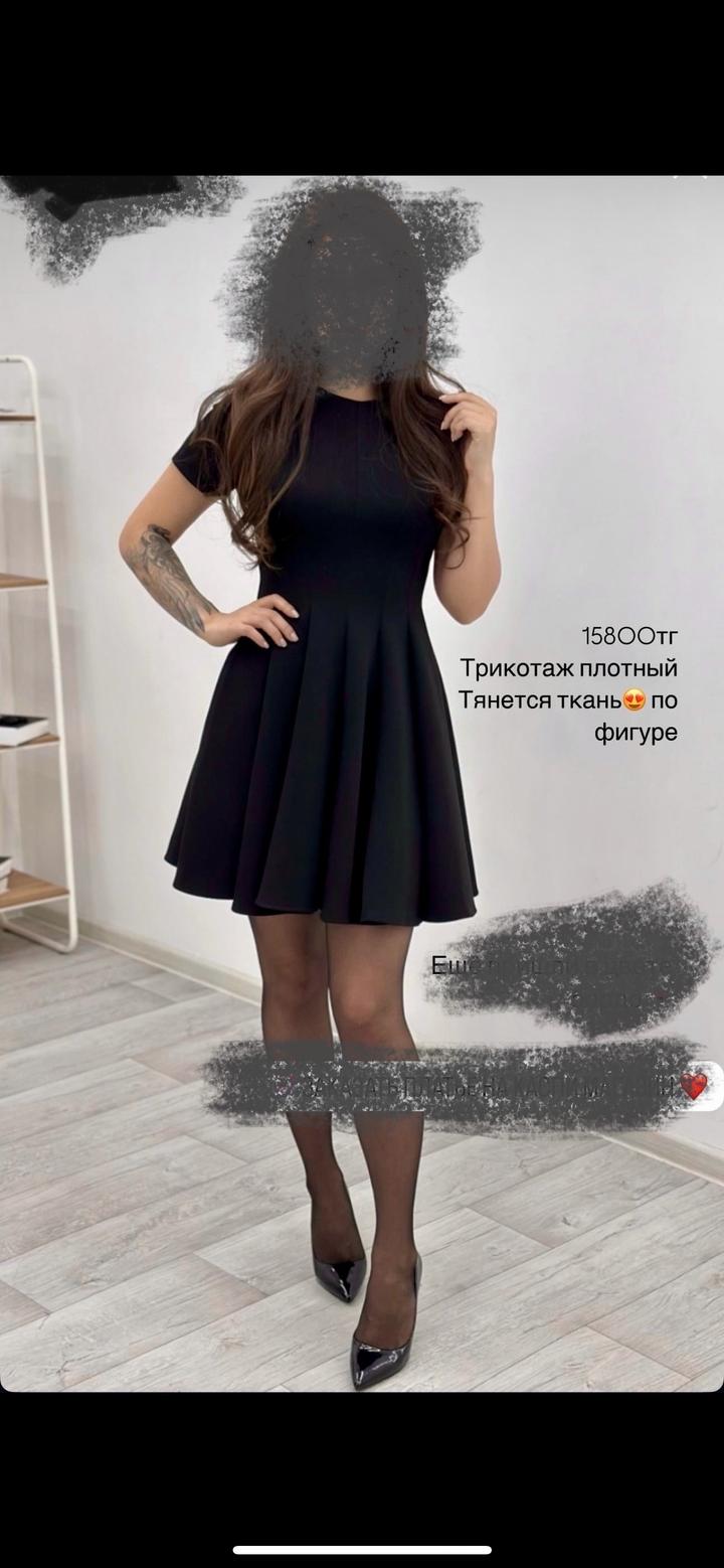 Платье базовое чёрное Женственное платье с идеальной посадкой по фигуре и расклешённой юбкой. Подчёркивает талию и создаёт аккуратный, элегантный силуэт. Материал: плотный трикотаж — тянется, мягкий, приятный к телу, не просвечивает Размер: единый (подойдёт на 42–46) Цвет: чёрный Крой: приталенный верх, расклешённая юбка Артикул: 590568