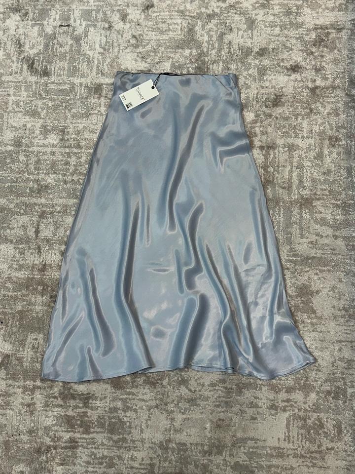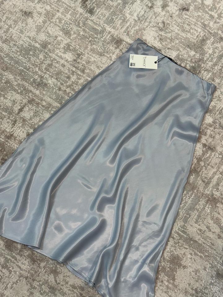Сатиновая юбка миди с глянцевым эффектом (голубая)M