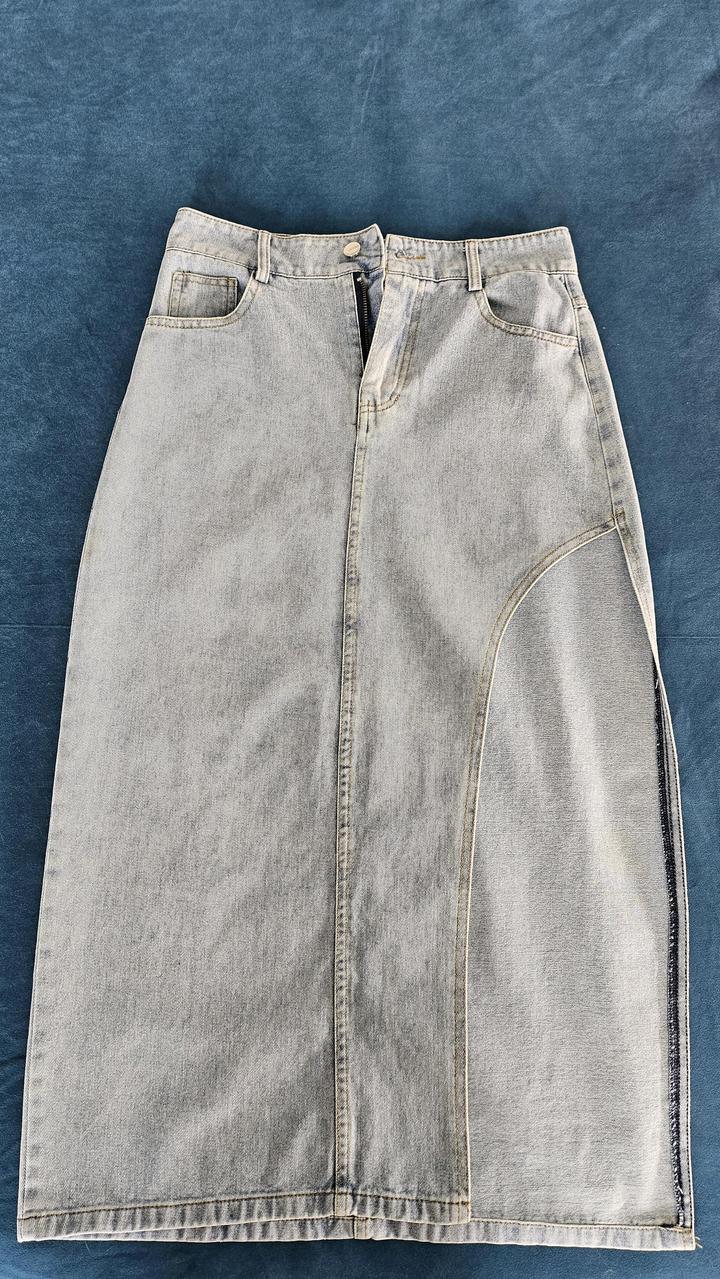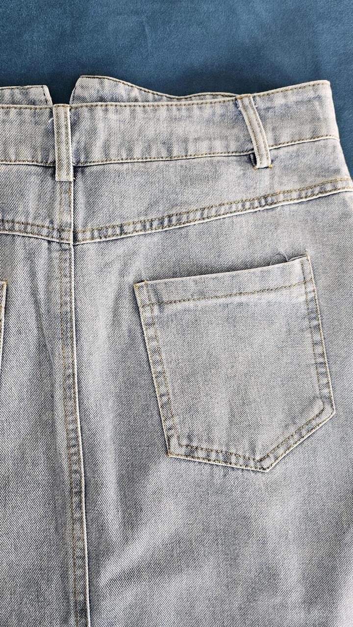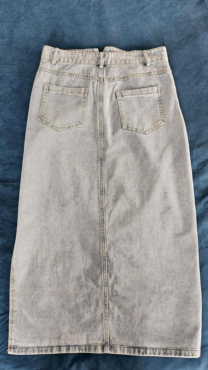 Джинсовая голубая юбка с элегантным вырезом. Очень красивая. Была надета один раз, оказалась мне большевата. На бирке размер L, но подойдёт скорее на размер 46-48. Мой рост 160, была до щиколоток. Артикул: 590906