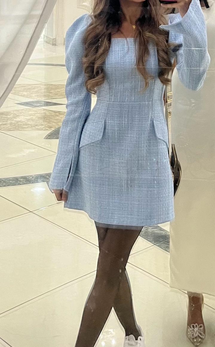 Качественное Голубое твидовое платье от sz store Размер S Сидит также как на модели Носила 1 раз Артикул: 590912