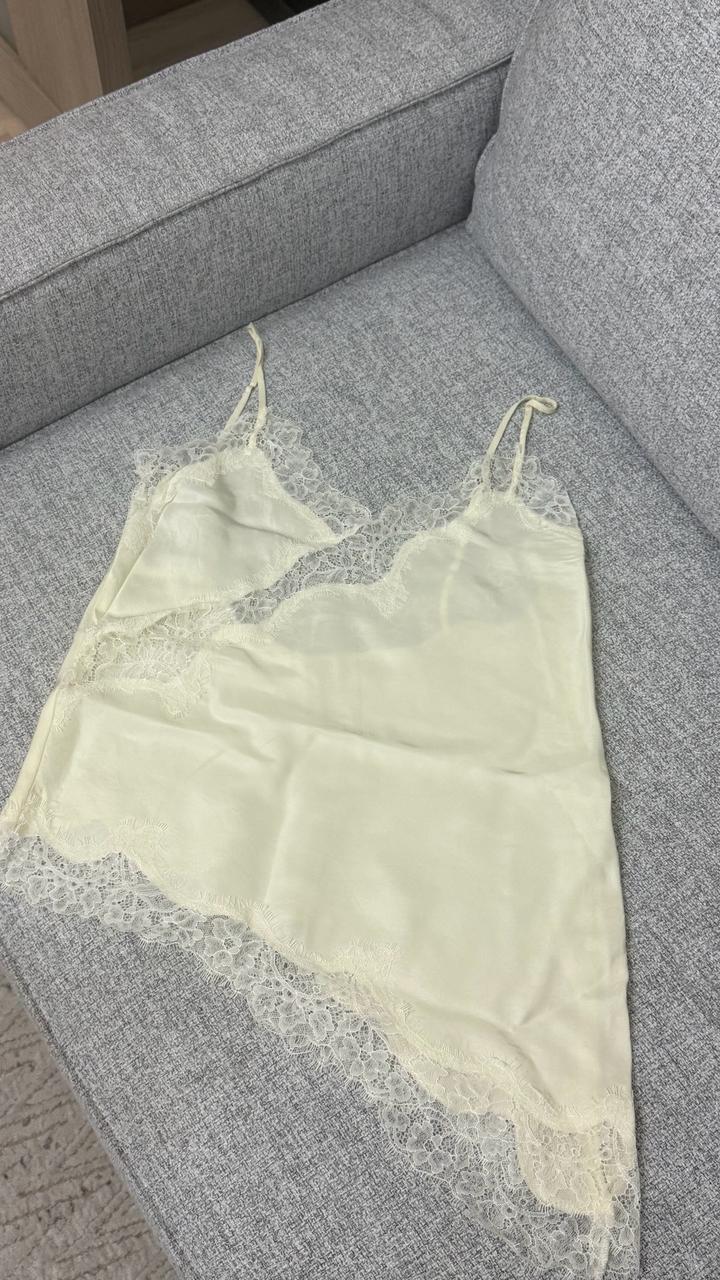 Товар был куплен в январе 26 года, не угадала с размером и срезала все бирки, в итоге оказался мал. У топа размер s, но на мой 46 я бы хотела больше, поэтому рекомендую его для девочек 42-44 размера. Топ в идеальном состоянии. Артикул: 590918