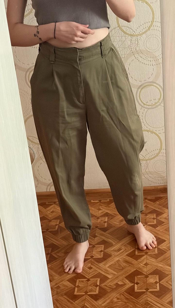 Мой рост 159 / Вес 50 кг Брюки‑джоггеры цвета хаки. Ближе к зеленому цвету. Размер 38 (S-M) Артикул: 590974