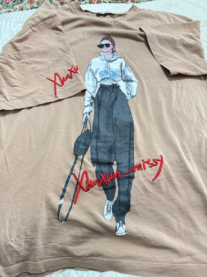 Коричневая футболка с принтом. Продается, так как уже разонравилась и не подходит под стиль. Носилась не много. Качества хорошее, как и состояние. Г. Алматы/Каскелен. Артикул: 590975