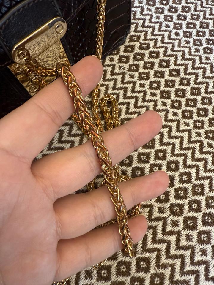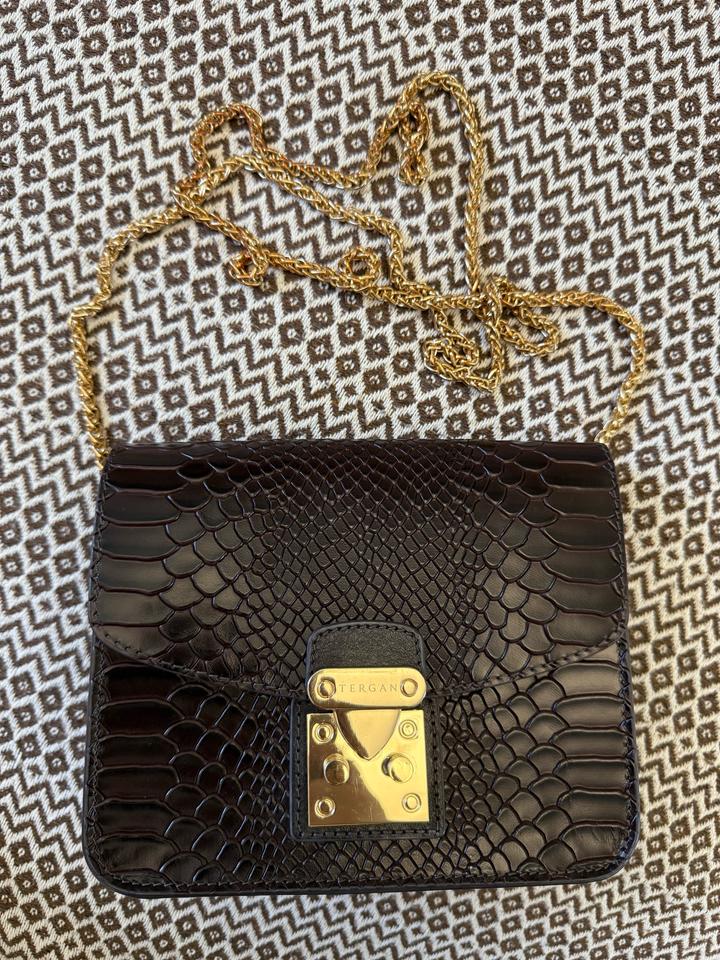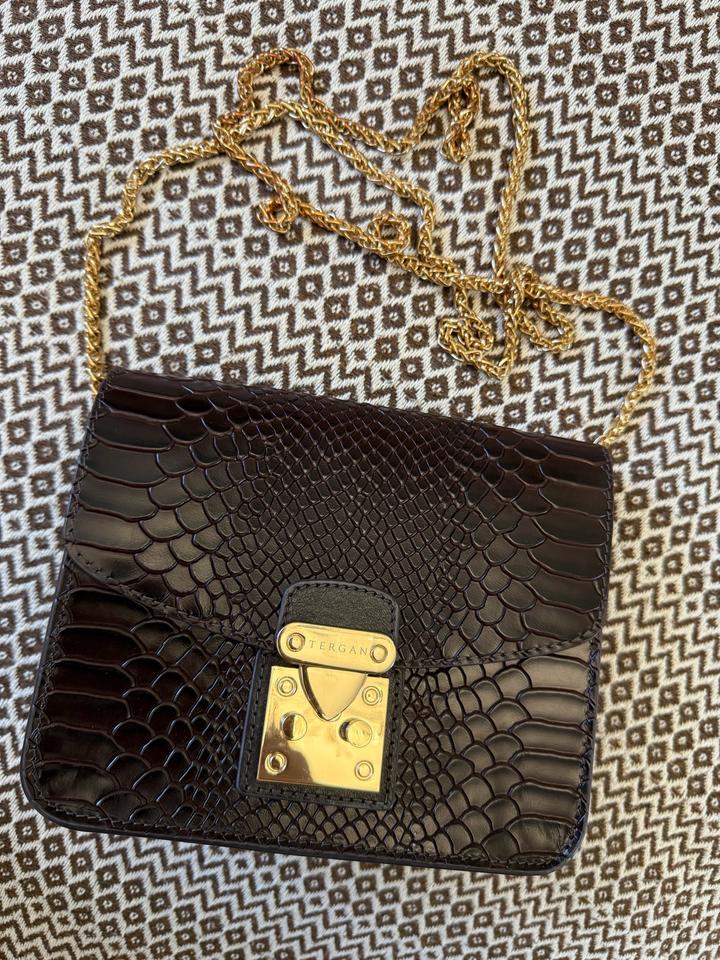 Tergan сумка, натуральная кожа. Цвет темный шоколад, внутри богатый подклад. Единственное цепь местами выцвела немного, а в другом состояние идеальное Артикул: 591001
