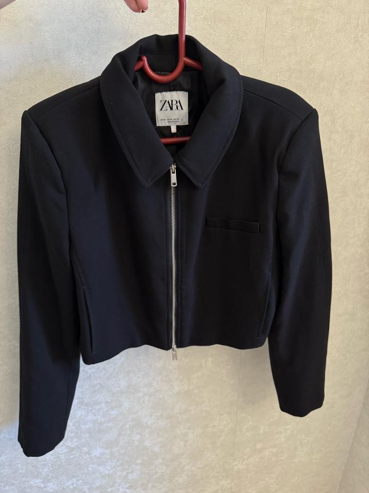 Zara чёрный укороченный пиджак с плечиками, в размере ХЛ, но думаю и на Л тоже подойдёт. Состояние идеальное Артикул: 591039