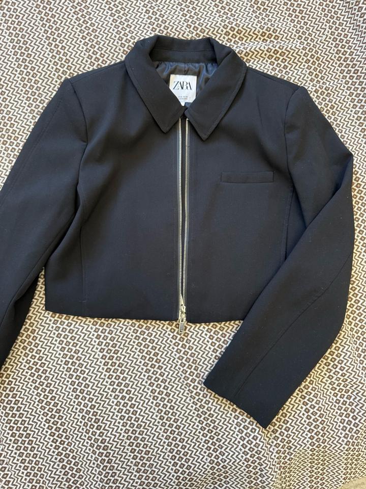 Черный укороченный пиджак Zara с плечикамиL/XL