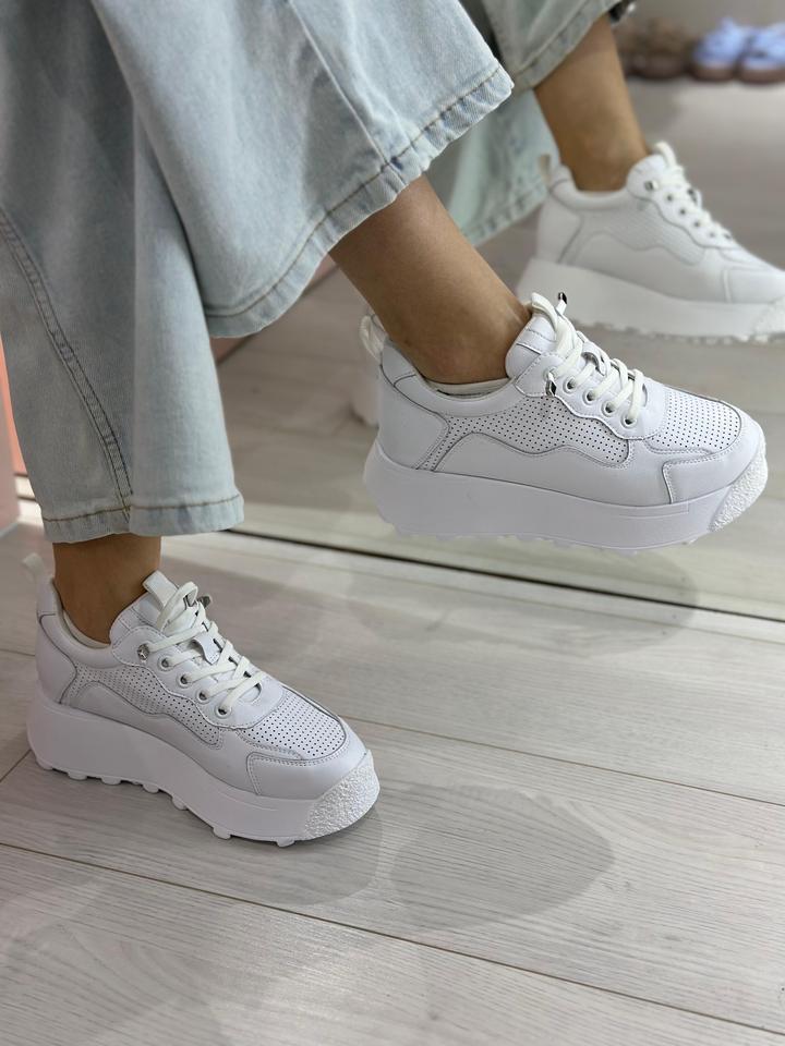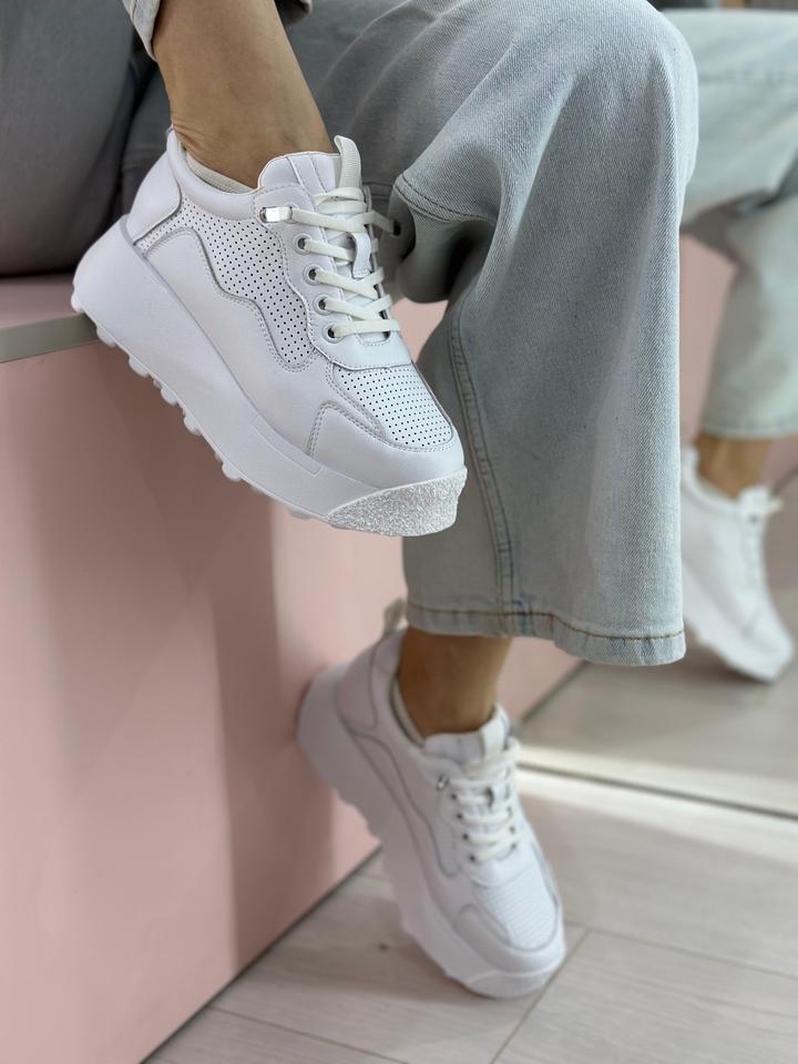 Базовые белые кроссовки Натуральная кожа с перфорацией Платформа 5 см Очень удобная и легкая Маломерит Артикул: 591082