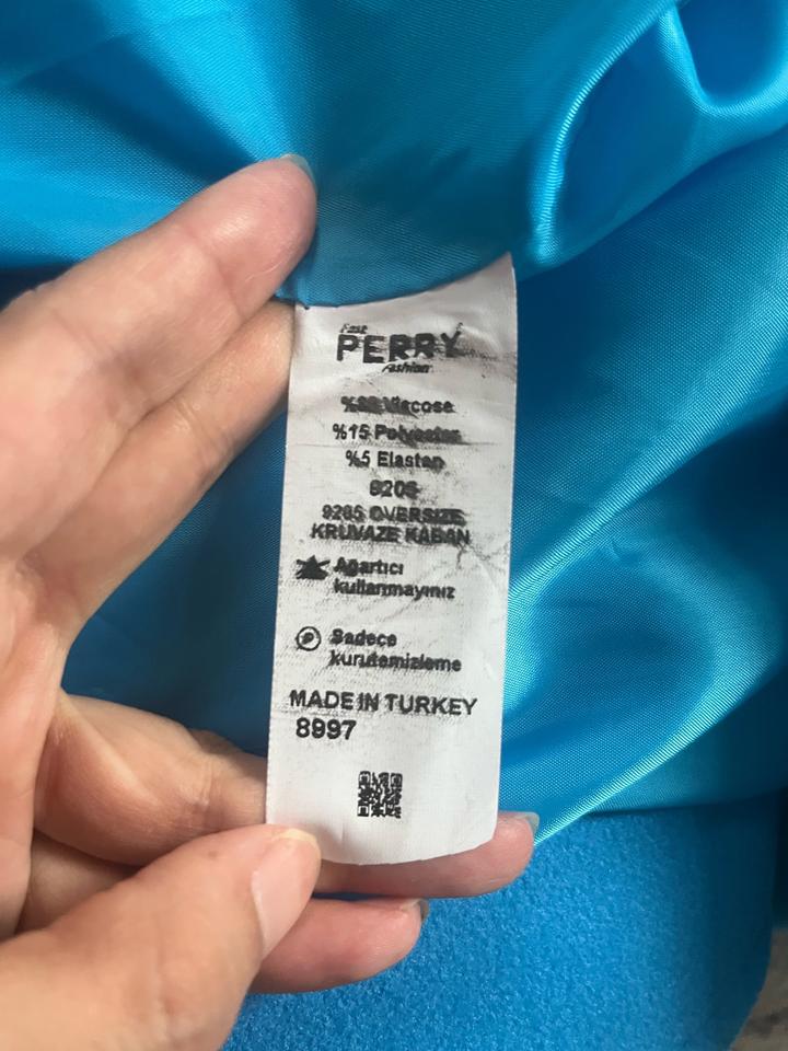 Продам эффектное двубортное пальто (кюве) от турецкого бренда Perry. Идеальный вариант для тех, кто любит выделяться и ценит комфорт. Яркий, сочный голубой цвет освежит любой осенний или весенний гардероб! Основные характеристики: Бренд: Perry (Made in Turkey) — отличное качество пошива. Фасон: Oversize (оверсайз). Свободный крой, который актуален всегда и позволяет надеть под низ плотный свитер или худи. Стиль: Двубортное (Kruvaze), с широкими лацканами — смотрится дорого и стильно. Артикул: 591191