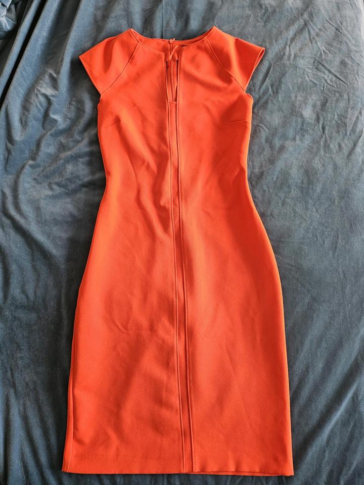 Эластичное платье немного офисного стиля, длина миди. Очень красиво подчёркивает талию. Надевала один раз на фотосессию, подойдёт на размер S. Есть две небольших стяжечки, но их не видно, если не приглядываться, фото приложила. Артикул: 591195