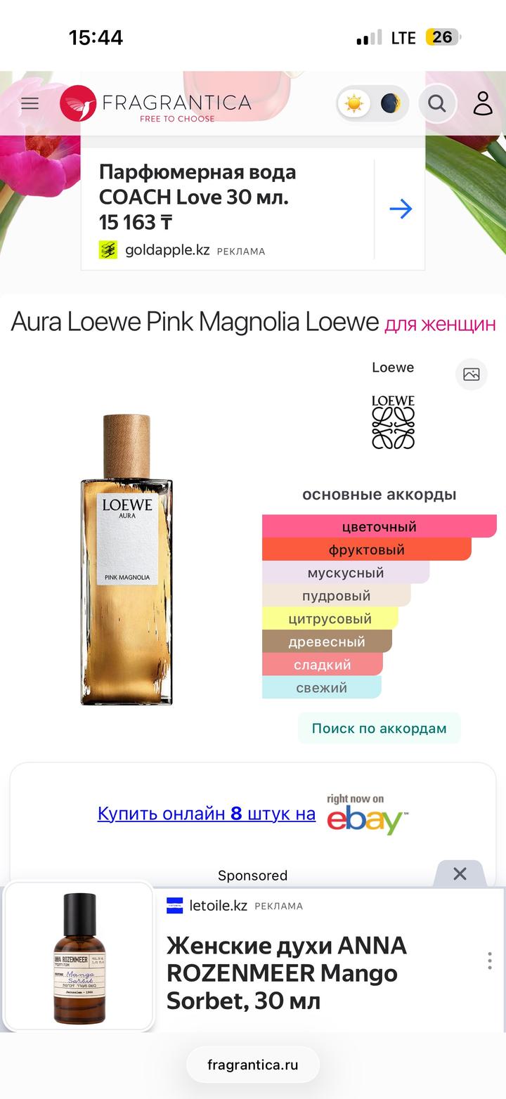 Продаю остаток в самом удобном и красивом формате — 20 мл из 30 мл. Идеальный вариант для тех, кто хочет познакомиться с легендарной «Магнолией» от Loewe или носить любимый аромат с собой в сумочке. Это густой, обволакивающий аромат с нотами розовой магнолии, красных ягод и сандала. Очень стойкий и комплиментарный — идеальная «аура» для особого случая. • Состояние: Оригинал. Флакон с фирменной деревянной крышечкой, выглядит как новый. Артикул: 591206