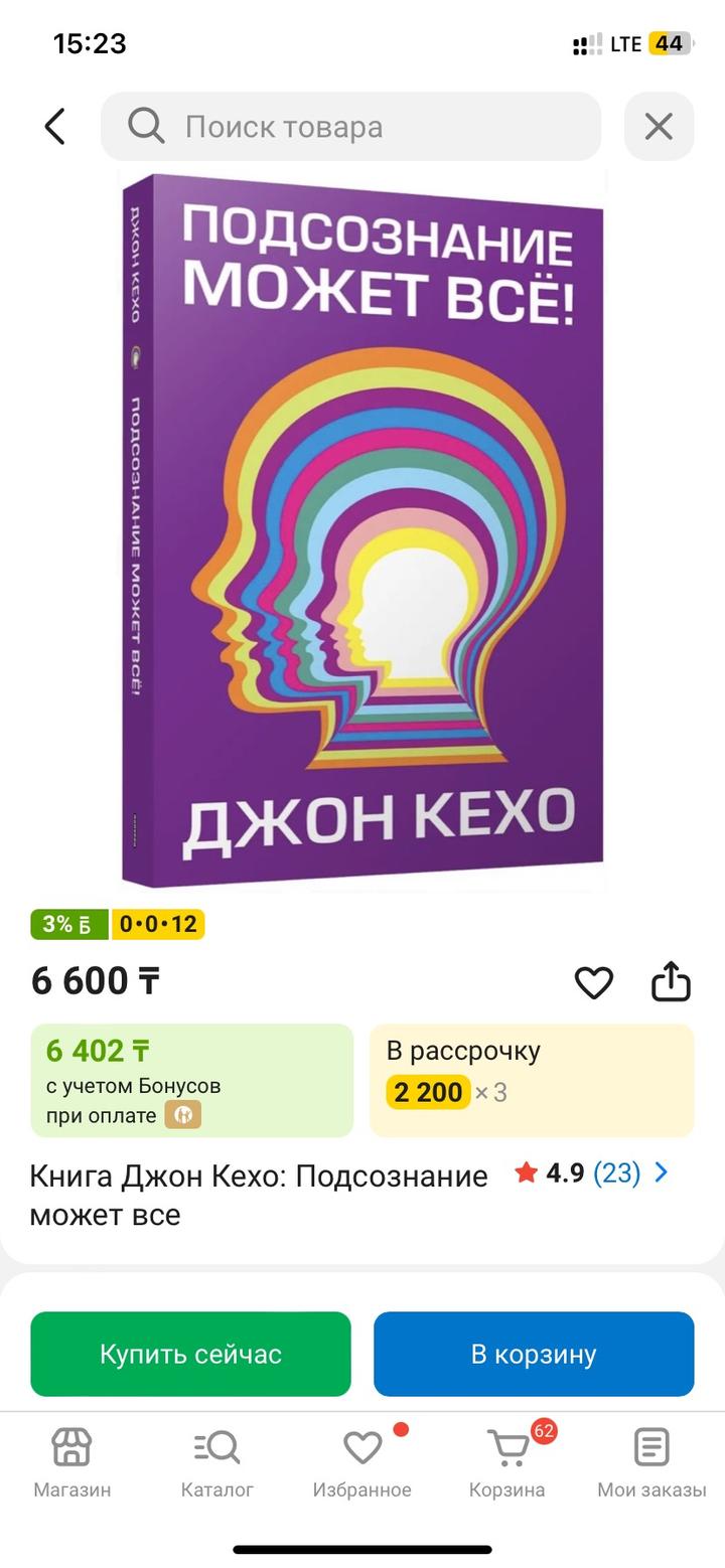Продам абсолютно НОВУЮ КНИГУ, нет никаких заломов или дефектов‼️Книга Кехо Д. : Подсознание может все! Всего за 1500тг🔥 Артикул: 591235