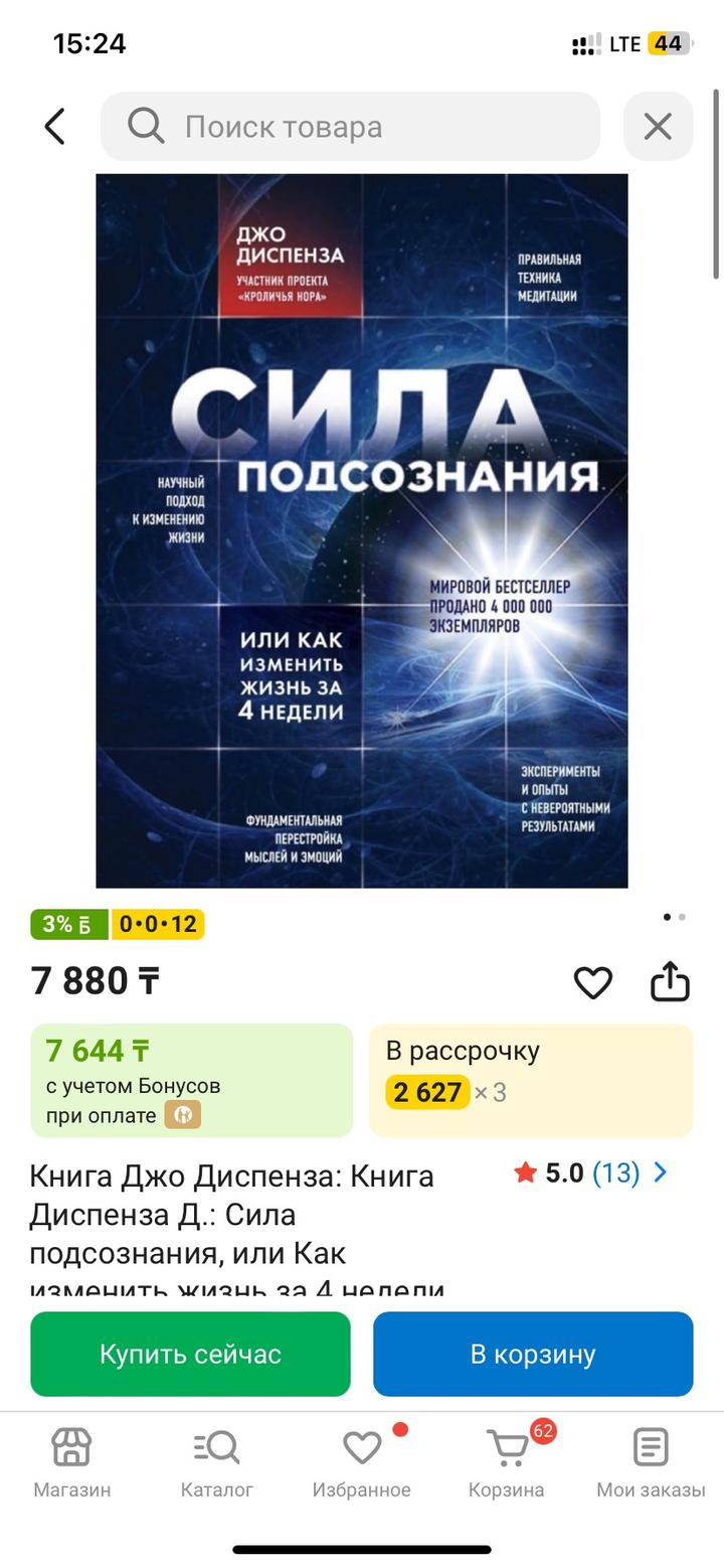 Продам абсолютно НОВУЮ КНИГУ, нет никаких заломов или дефектов‼️Книга Джо Диспенза: Книга Диспенза Д.: Сила подсознания, или Как изменить жизнь за 4 недели. Всего за 1500тг🔥 Артикул: 591239