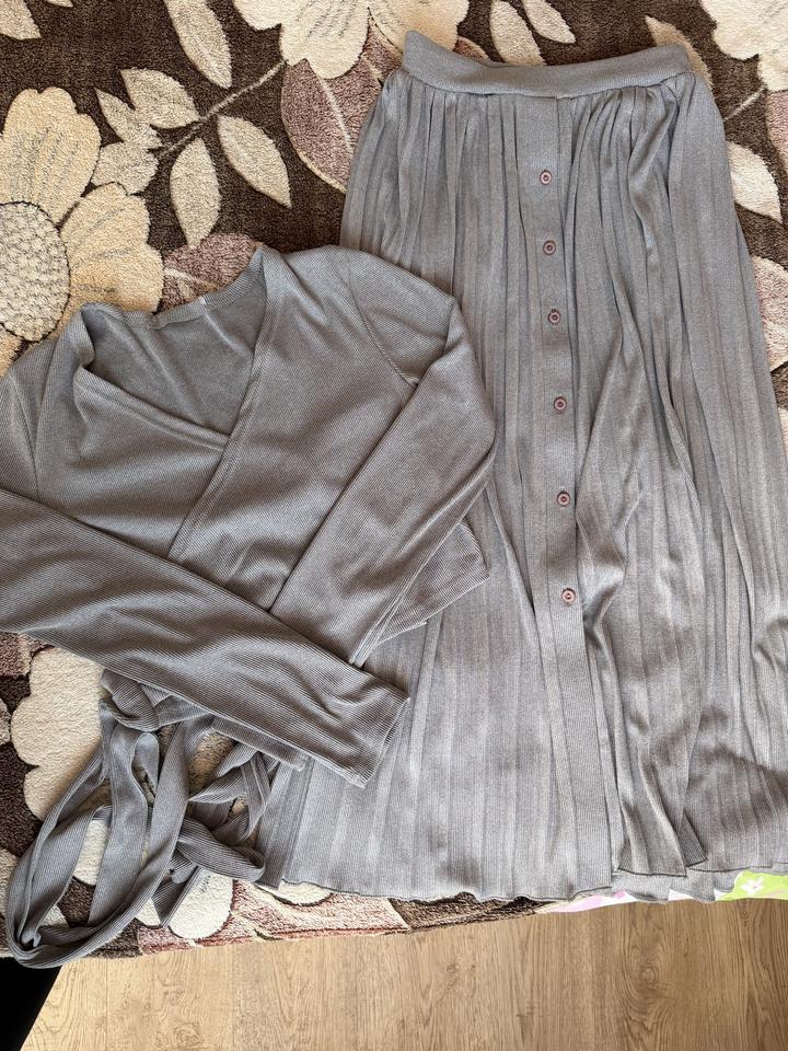 Юбка длинная, кофта на запах с веревочками . Косту можно надеть с любой другой одеждой. Размер указан на одежде 48 , но он подойдет на 46 на 48 маленький будет. Носила мало , просто весит в шкафу) Покупала в торговом центре. Артикул: 591252
