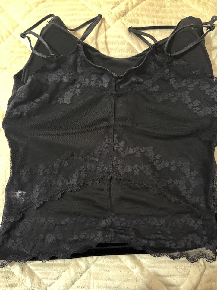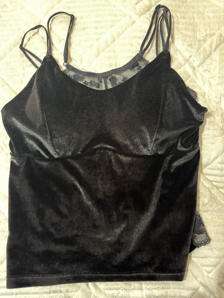 Черная майка/топ. Состояние хорошее, ткань такая бархатная. Спина просвечивает. размер xl, но думаю подойдет и на размеры меньше. Хорошо смотрится с пиджаком сверху. Артикул: 591276