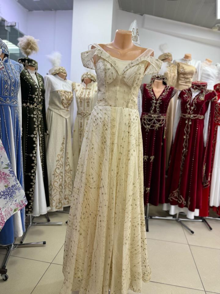 Бежевое платье в размере 42. В хорошем состоянии. Артикул: 591285