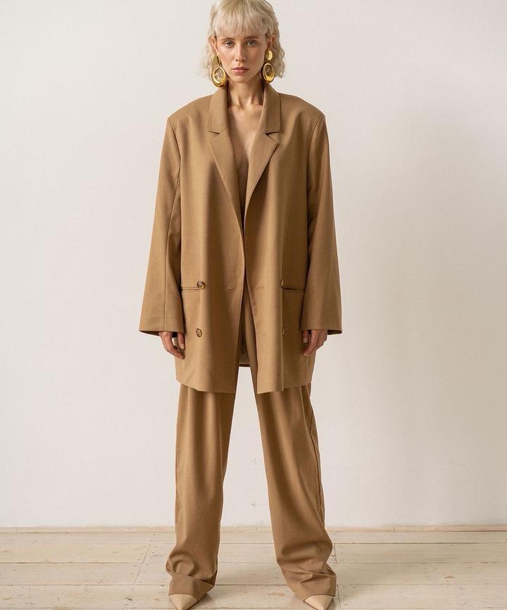 Продам роскошный костюм-двойку в идеальном состоянии. Цвет: благородный кэмел, выглядит актуально и дорого. Почему он особенный: • Крой: Трендовый оверсайз. Идеально садится на размер M-L, создавая тот самый расслабленный, но собранный силуэт. • Трансформер: Длина пиджака позволяет носить его как самостоятельное платье-пиджак. Добавьте каблуки и дерзкий вечерний образ готов. • Повод: Идеальный выбор для выпускного, свадьбы или бизнес-форума. Цена: 30 000 тг и 35 если с кроп-топом Артикул: 591291