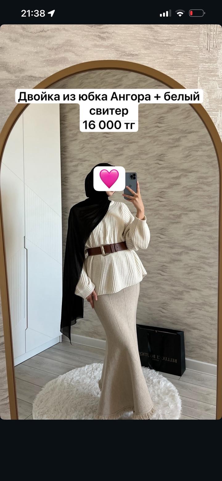 Юбка в бежевом цвете из Ангоры. Очень теплая, мягкая, красиво подчеркнет фигуру Артикул: 591296