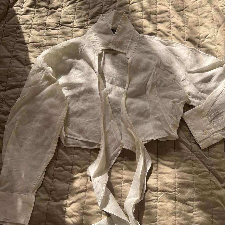 Рубашка льняная Zara белого цвета, укороченная, завязывается, размер xs, как новая Артикул: 591361