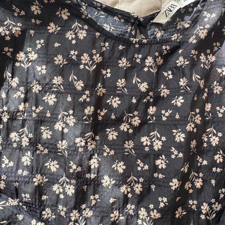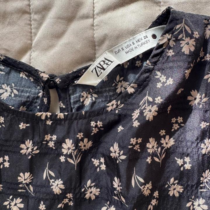Черное платье Zara в цветочек, мини, размер S, отлично смотрится с черным пиджкаком Артикул: 591368