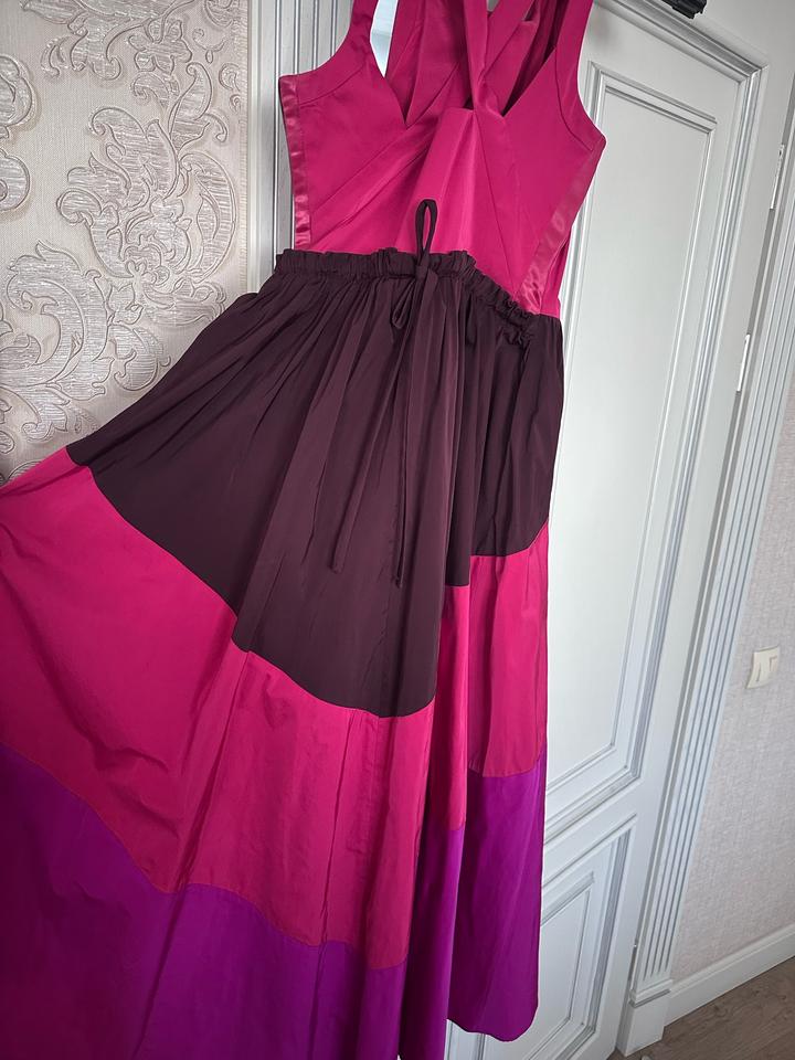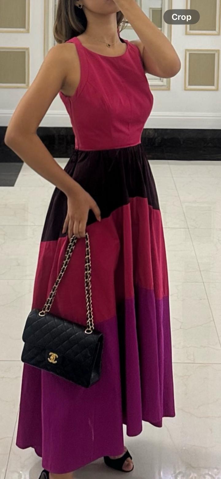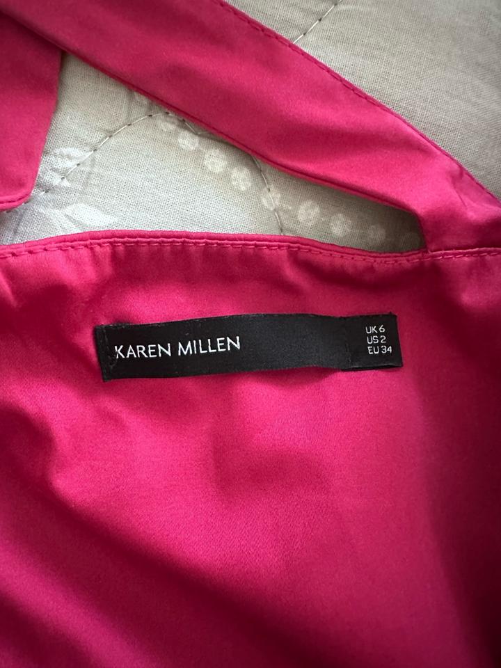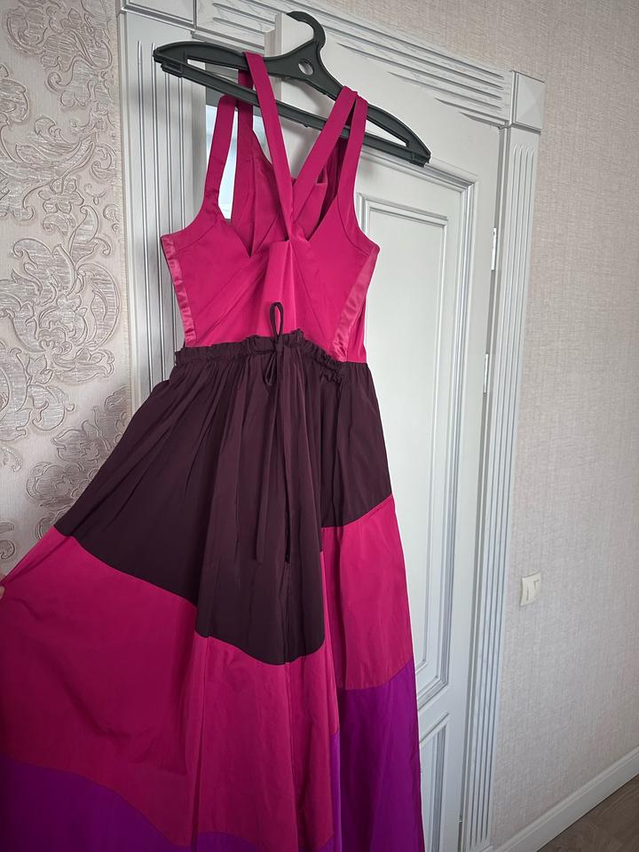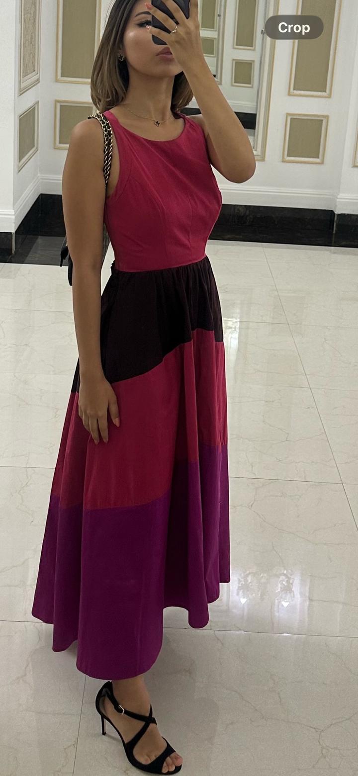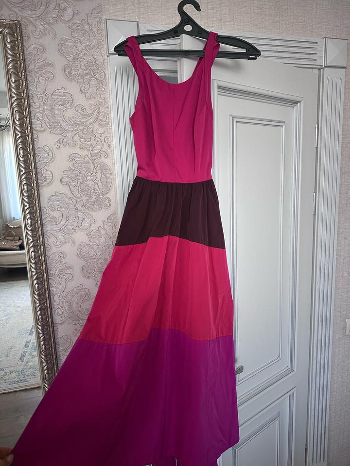 Вот вариант для объявления, чтобы звучало дорого и привлекательно: Karen Millen Vintage Archive Maxi Dress Редкое дизайнерское платье Karen Millen в эффектной цветовой палитре color block (fuchsia/plum). Приталенный силуэт, необычная открытая спинка с перекрестными бретелями, роскошная летящая юбка. Очень красивое и качественное платье для особого случая. • Размер: UK 6 / EU 34 (XS) • Оригинал Karen Millen • Archive / rare model Подойдет на мероприятие, вечерний выход, свадьбу, фотосессию Артикул: 591429