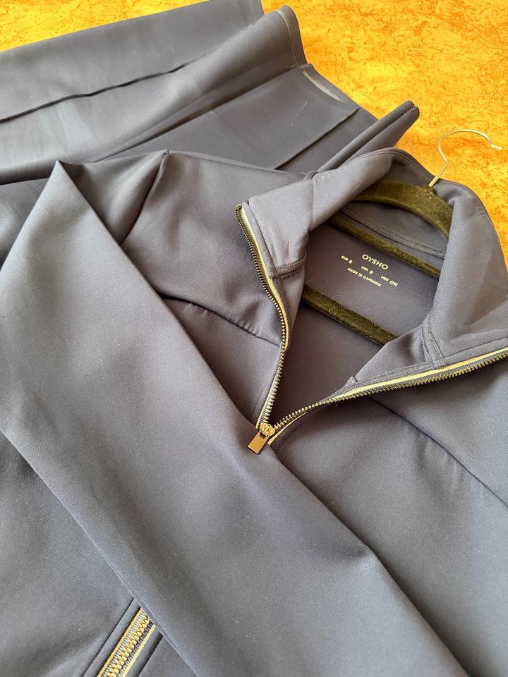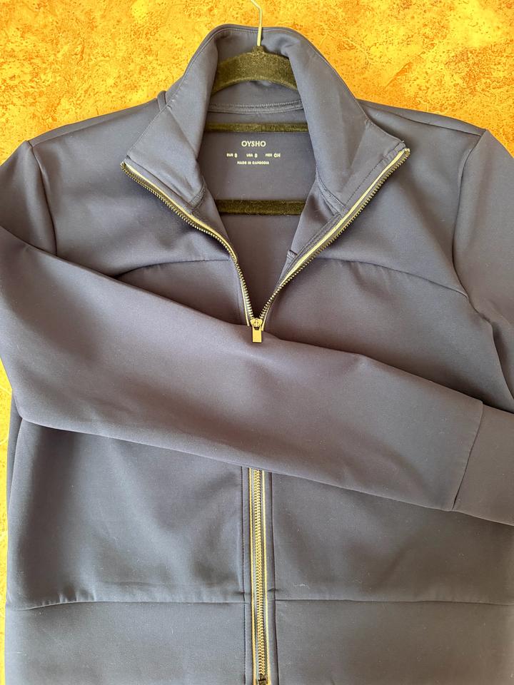 Спортивный костюм Oysho. Выполнен из синтетического эластичного трикотажа (полиамид/эластан), хорошо тянется, отлично садится по фигуре. На брюках стрелки, на бомбере есть карманы. На рост до 162см. Артикул: 591508