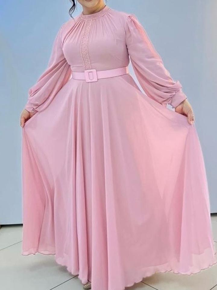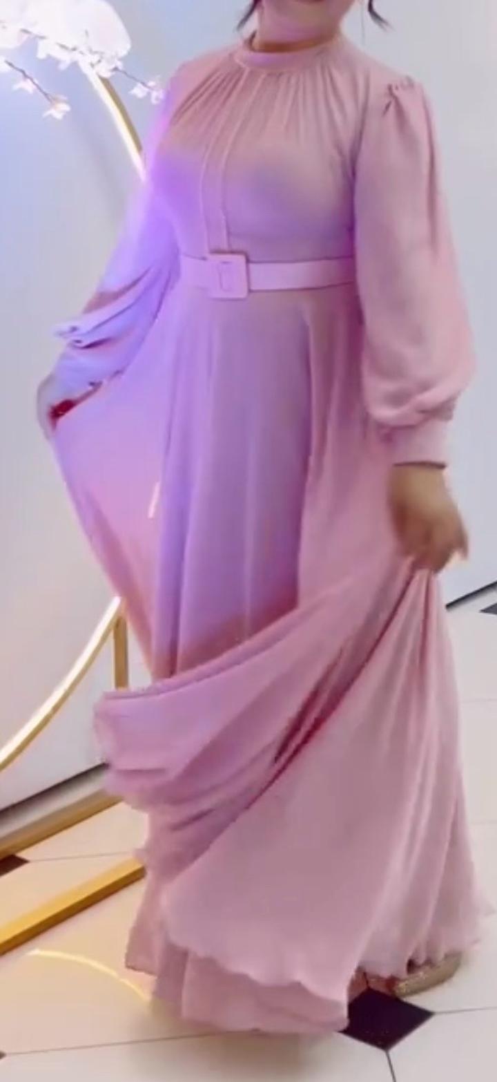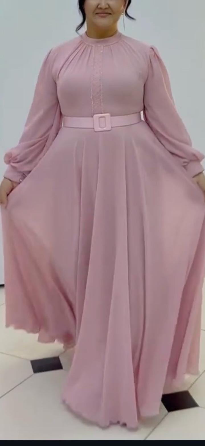 Розовое длинное платьеL