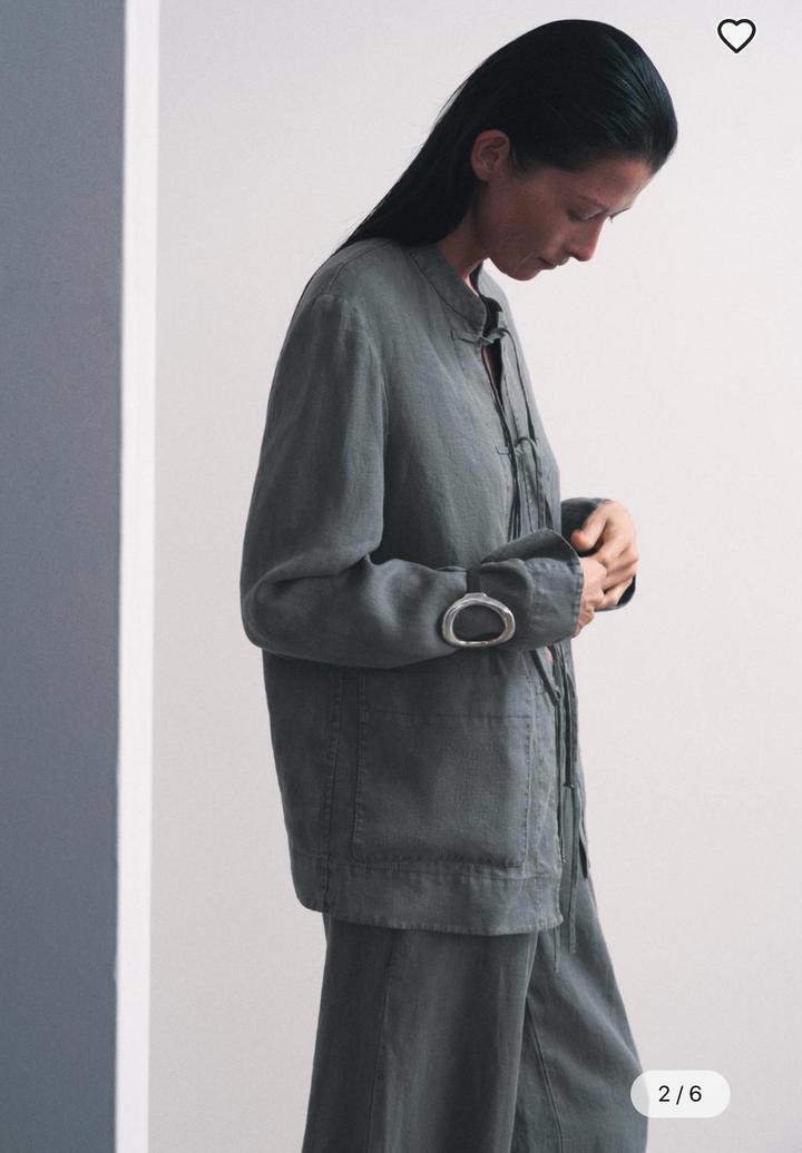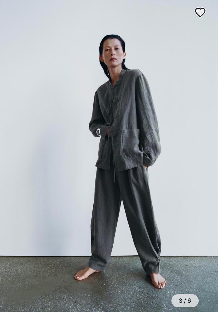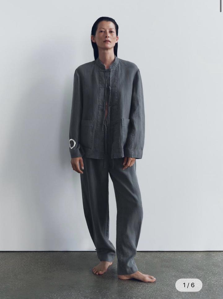 Новая двойка из льна от Zara Трендовая азиатская стилистика Размер М Цвет серый Покупала верх за 55.990 и низ за 39.990 Коллекция Zara «ZW» Куртка из 100% льна. Круглый вырез, длинные рукава. Передние накладные карманы. Застегивается на завязки. Широкие брюки со средней посадкой, из 100% льна. Боковые карманы в швах. Защипы спереди. Застежка-молния, пуговица и металлические крючки спереди. Артикул: 591580