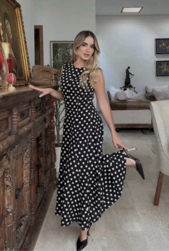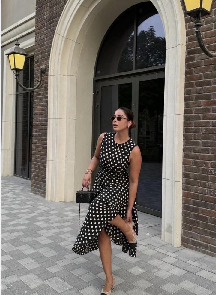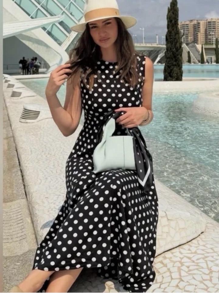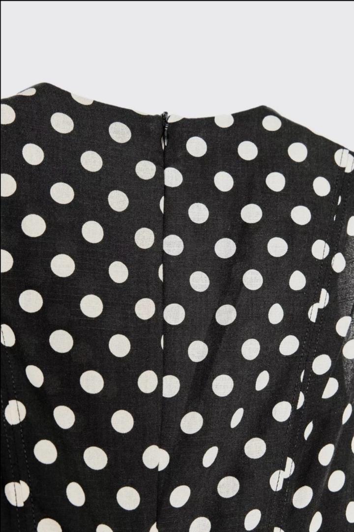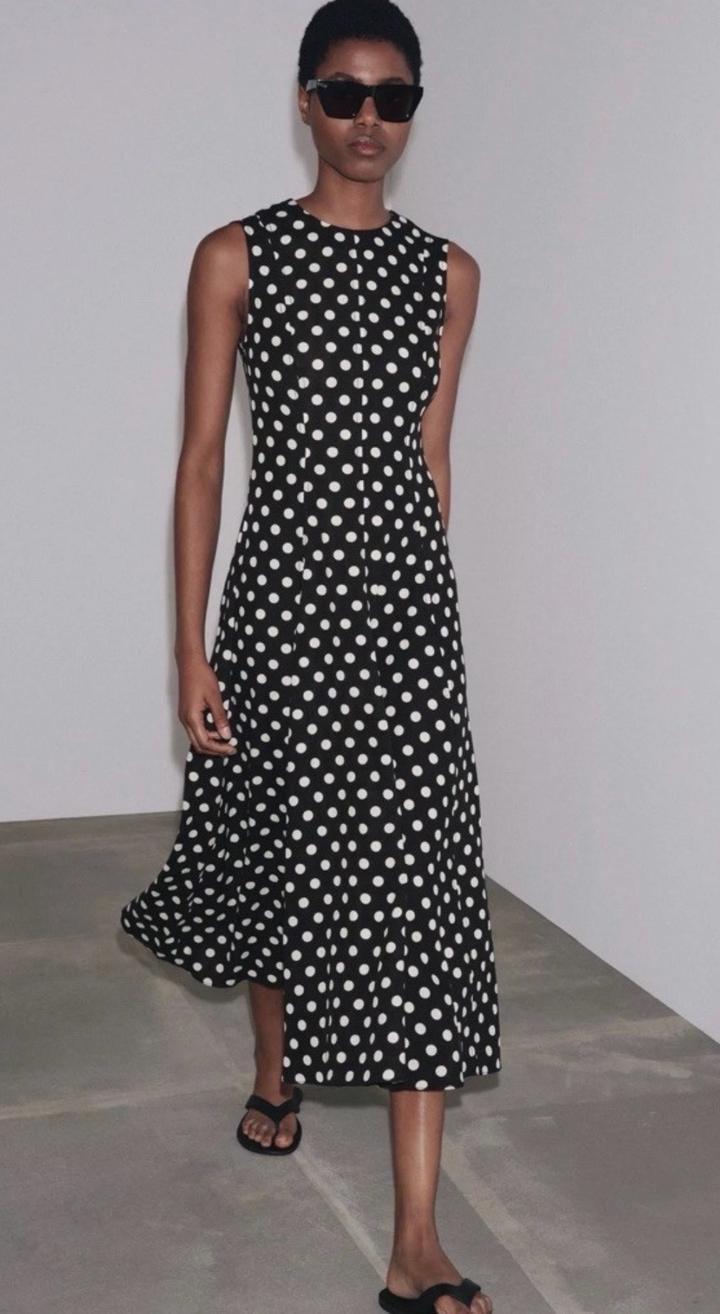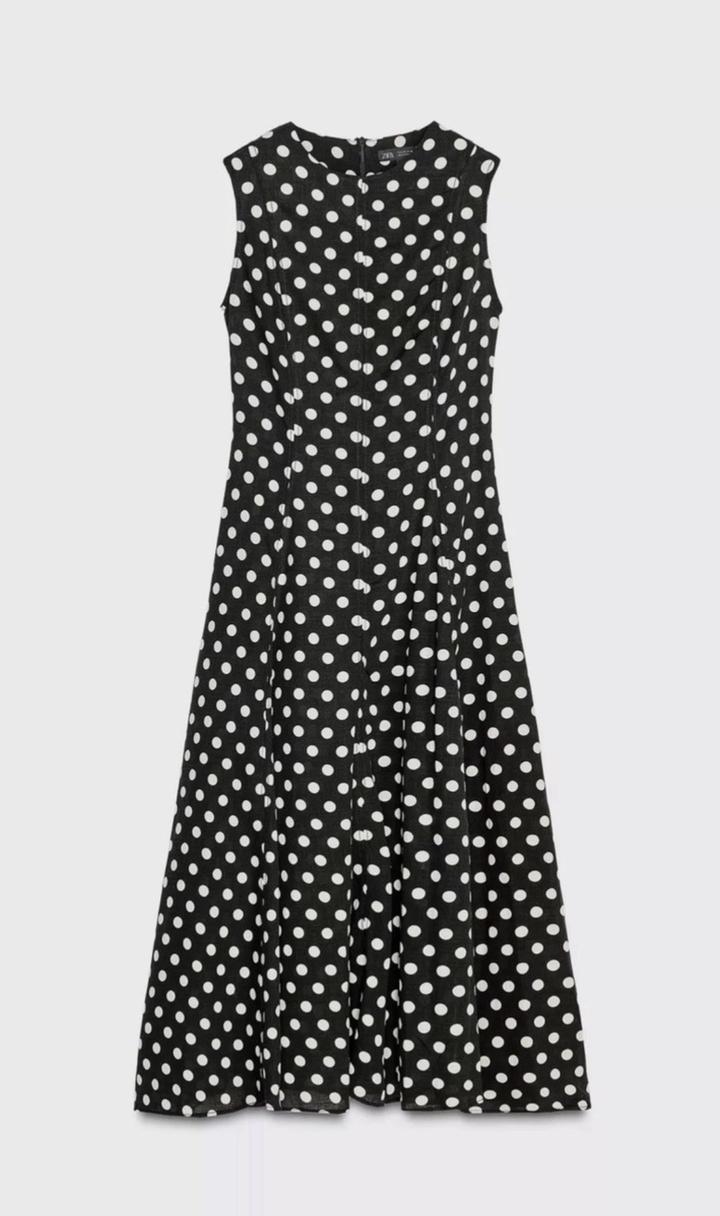 Новое платье от Zara Коллекция ZW из льна за 39.990 Размер М Принт горох Материал лен Длина миди Артикул: 591597