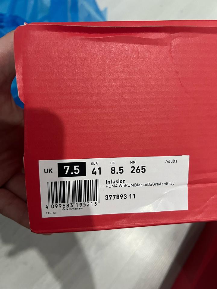 👟 Puma Infusion — Легкость и Динамика Современные кроссовки с агрессивным дизайном для тренировок и города. Мягкая пена ProFoam для мгновенного отклика. Прочный фиксатор пятки и высокий воротник. Технологичный силуэт с узнаваемым логотипом Puma. Подойдут людям с узкой стопой, а так же данная модель маломерит. 41 eu 265 mm идеально сядут людям со стелькой 260 mm Артикул: 591628