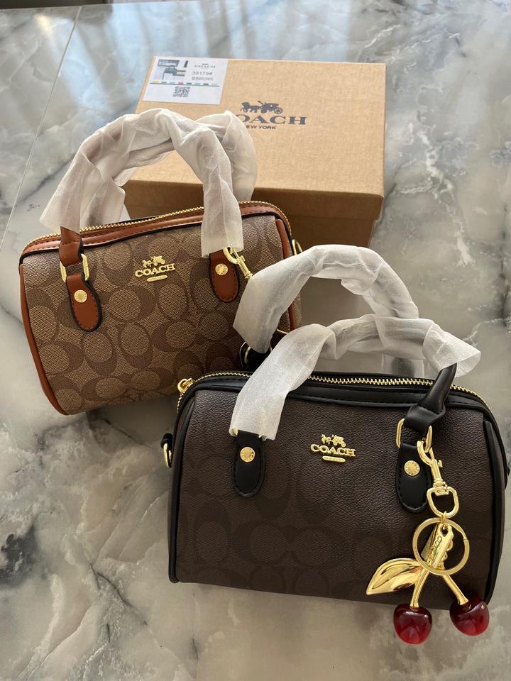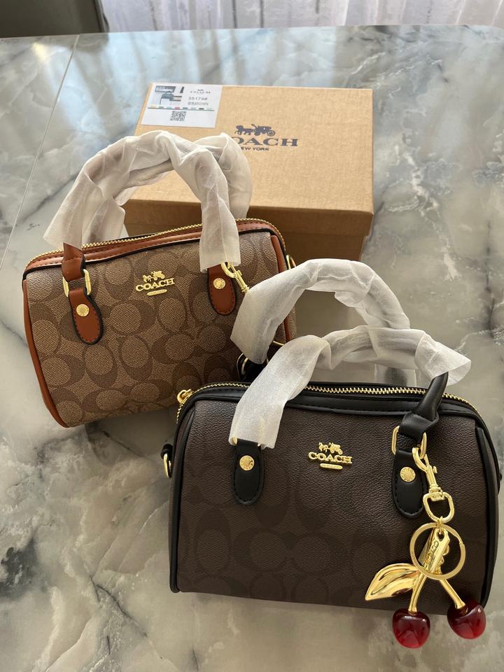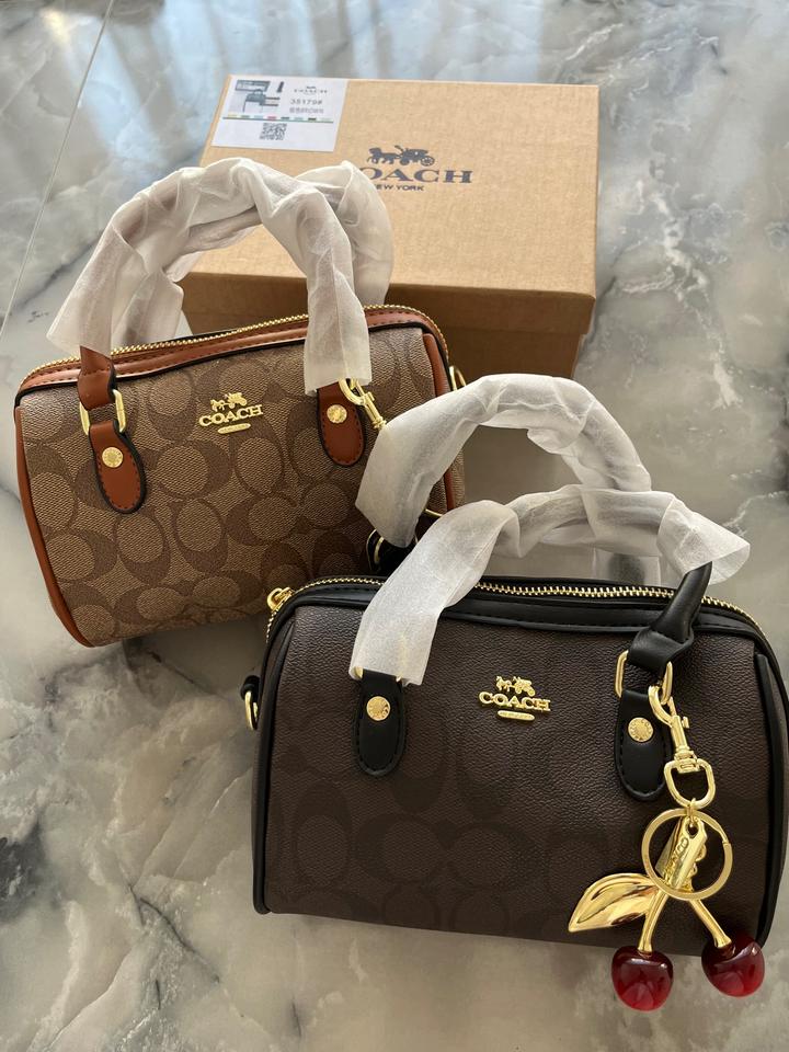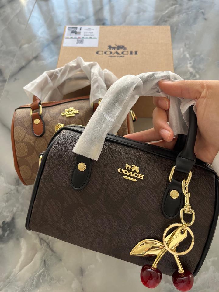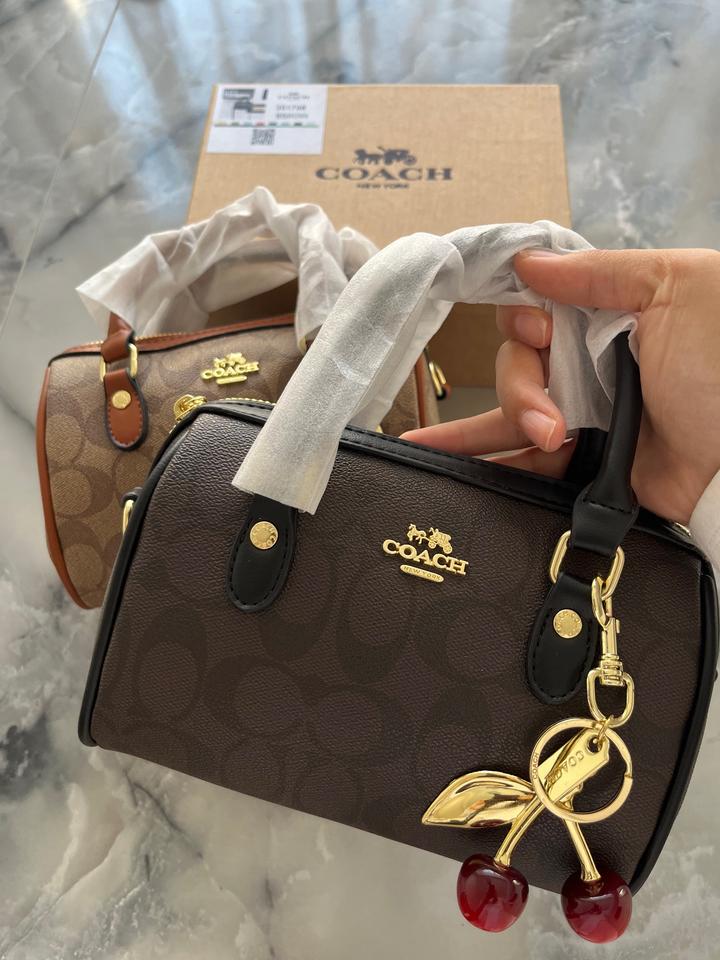 Сумки бочонок coach, есть длинный ремешок, брелок вишенка, в 2 расцветках, люкс копия + коробка, пыльник, по 8500 каждая Артикул: 591669