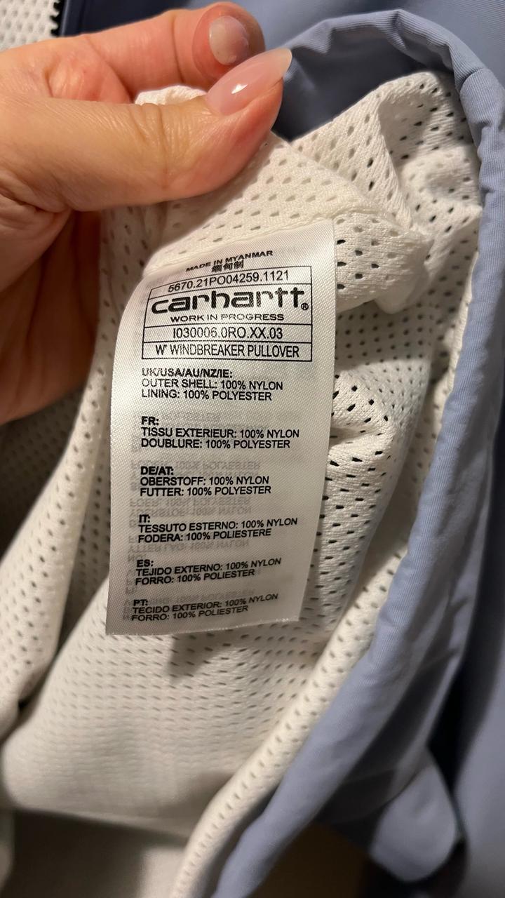 Анорак Carhartt WIP в нежно-голубом цвете. Лёгкий, удобный, защищает от ветрам дождя, при этом дышащий. Свободный крой, капюшон, удобный карман спереди. Смотрится очень аккуратно. Состояние отличное. Продаю, потому что не ношу. Артикул: 591706