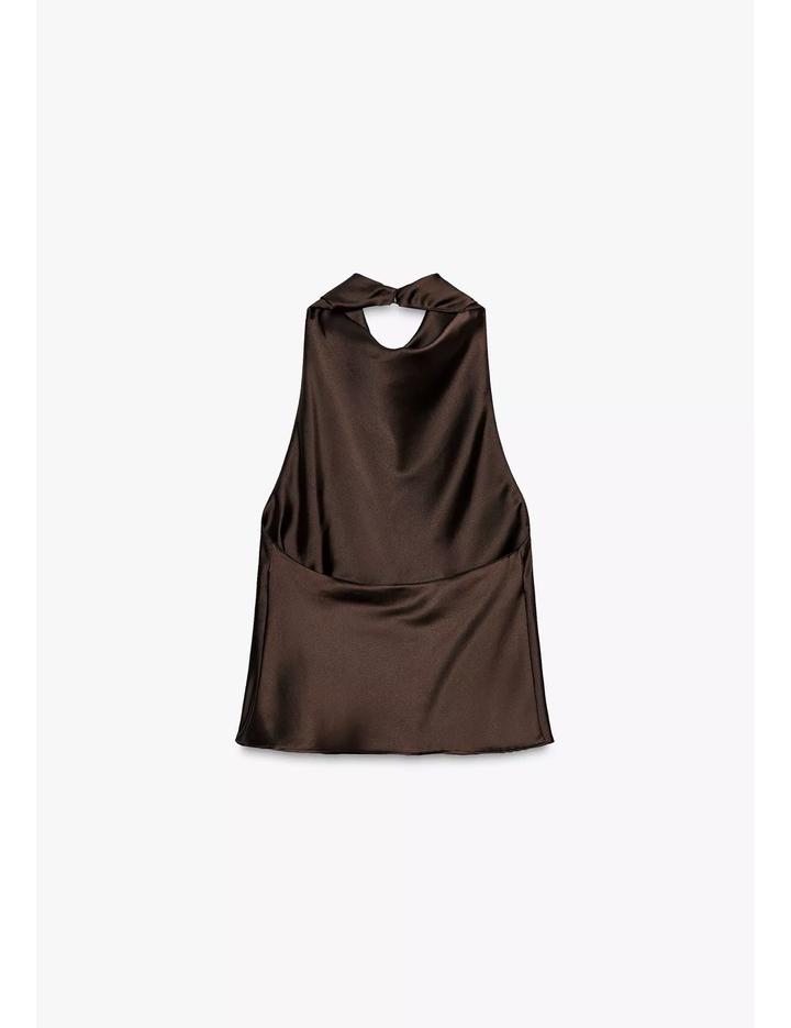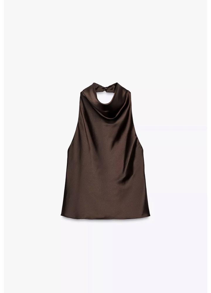 Атласная майка топ с открытой спинкой Коричневый цвет Состояние новое Надевалось 1 раз Артикул: 591732