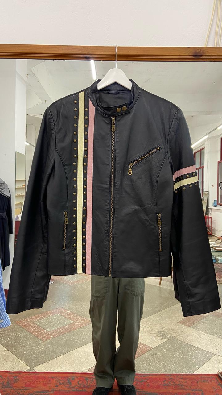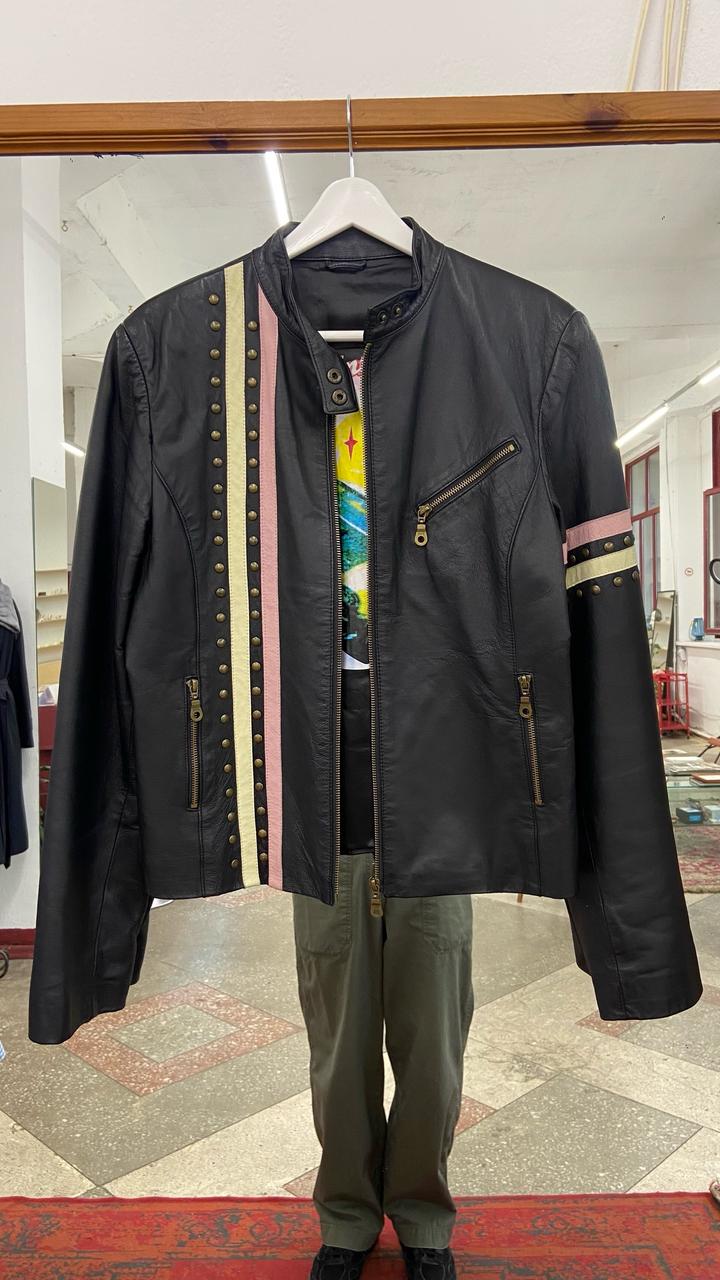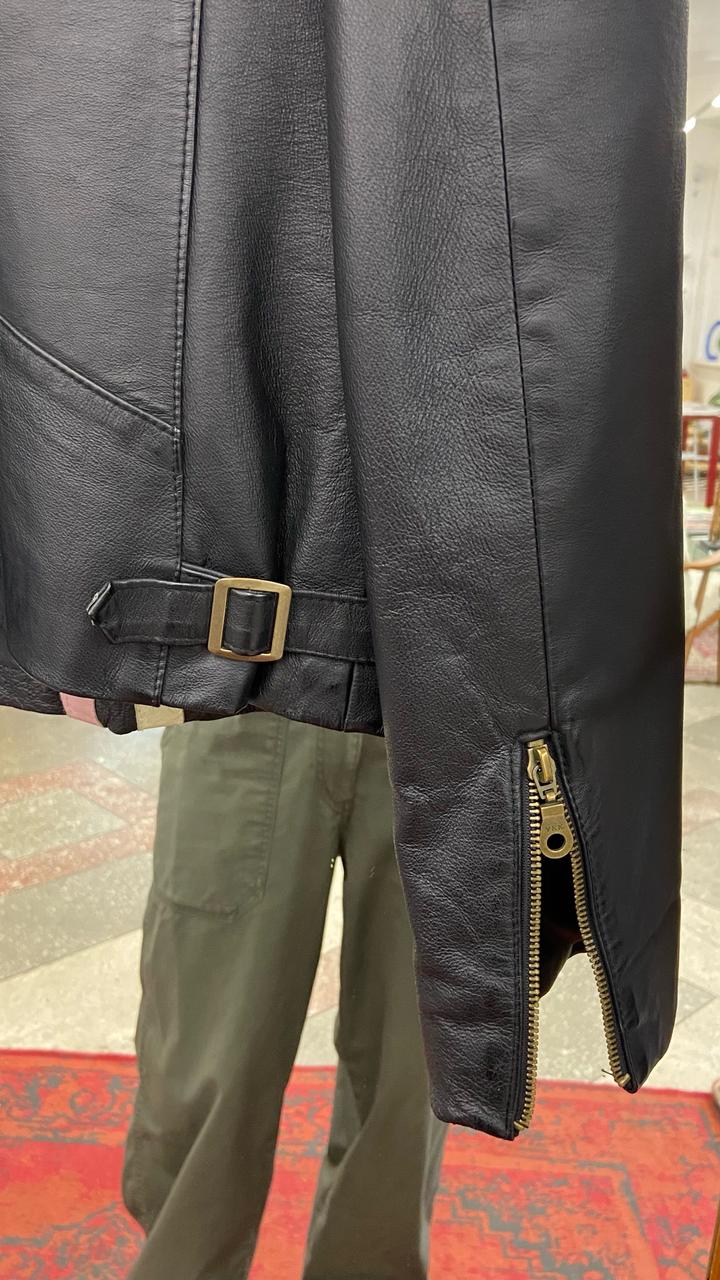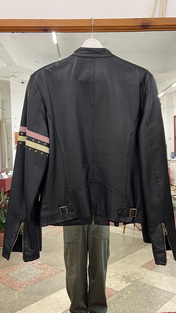 Продаю оригинальную кожаную куртку от бренда Fishbone. Очень стильная и необычная модель, которая точно выделит вас из толпы!Главная фишка: на спине — яркий, детализированный принт в ретро-стиле с изображением автомобиля, луны и надписью «Joy riding into the night». Спереди куртка украшена вертикальными полосами из страз/клепок (серебристые и золотистые), что придает ей рокерский шик.Материал: Натуральная кожа (очень мягкая и качественная). Подкладка — полиэстер. Цвет: Черный.Размер: XL (по бирк Артикул: 591776