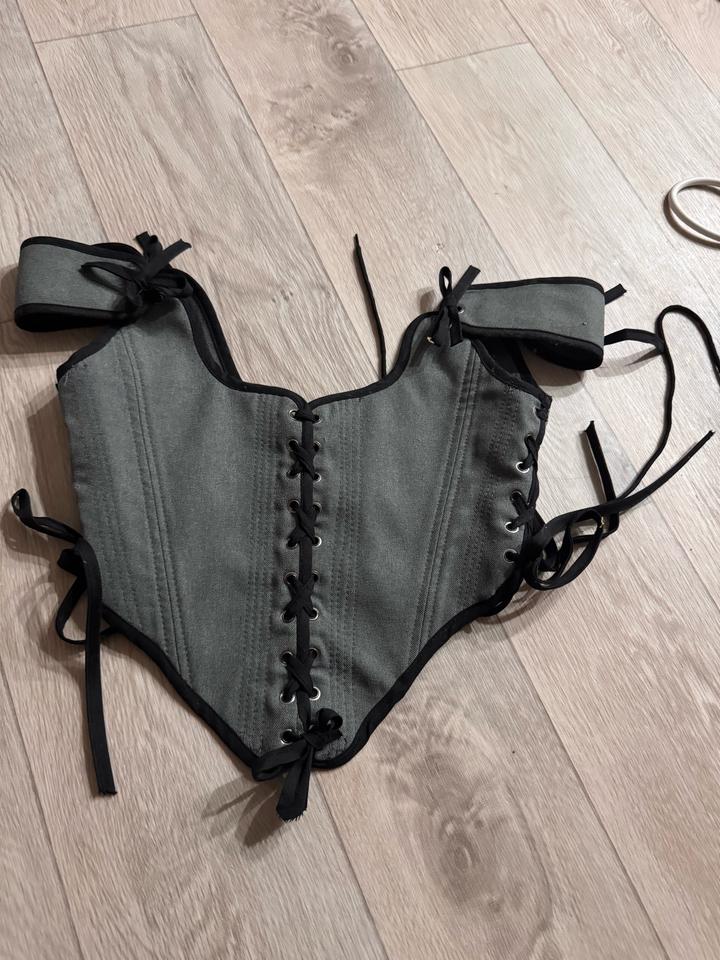 Серый корсет с завязками,можно спокойно урегулировать длину лент и подстроить под себя Нету никаких вставок,не жесткая в корсетной зоне,очень удобная Артикул: 591818