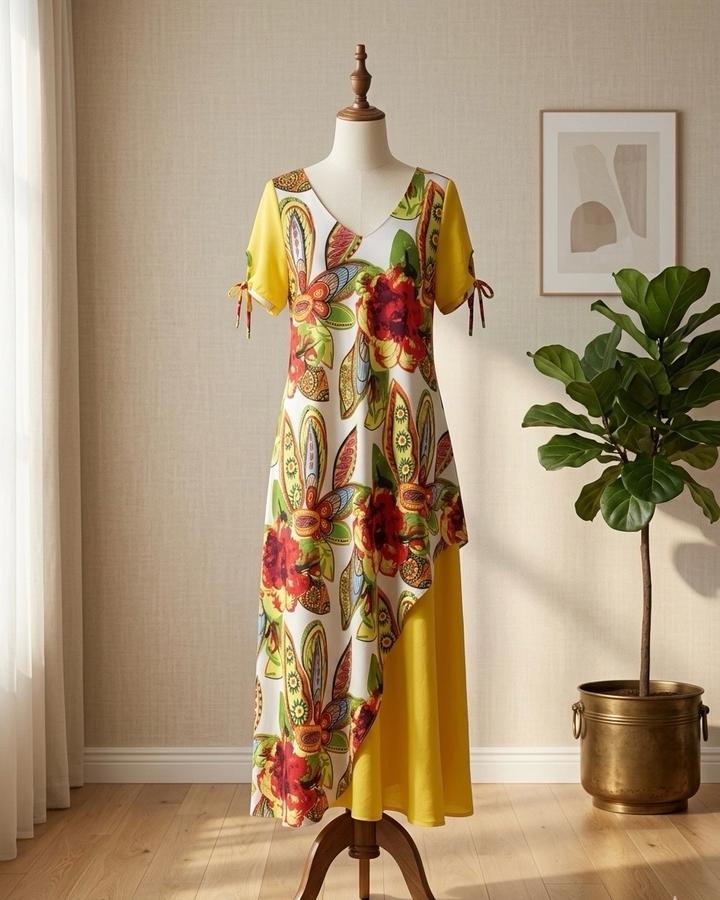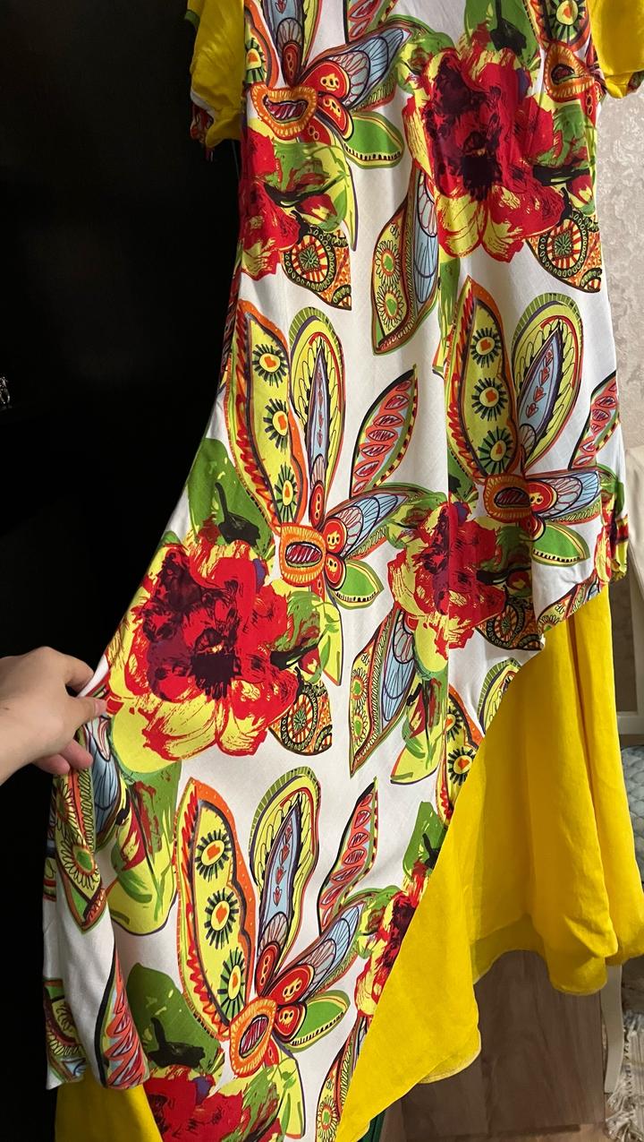 Идеальное, почти новое. Надевалось всего один раз, сохранило первоначальный вид. Уникальный комбинированный принт с этническими и цветочными элементами. Прекрасно подойдет для летних прогулок, отдыха на море, семейных праздников или творческих встреч. Сочетается как с босоножками на танкетке, так и с удобными сандалиями. Артикул: 591870