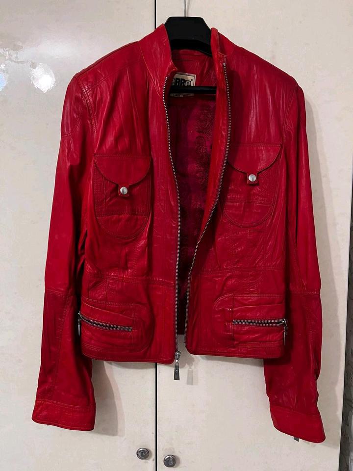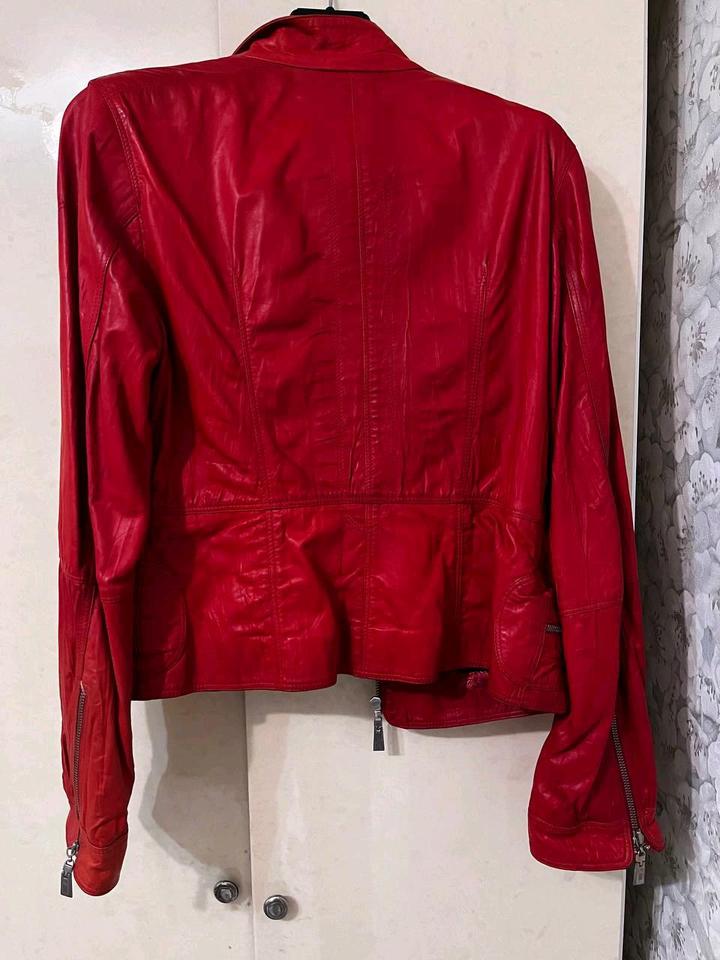 Яркая красная кожаная куртка ❤️ Добавит характера любому образу Отлично сочетается с джинсами, платьями и базовыми вещами Артикул: 591908