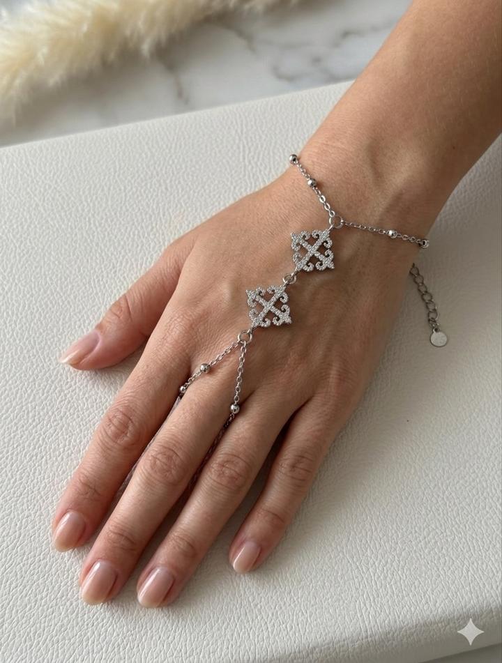 Слейв-браслет в этно-стиле на руку Материал латунь покрытие родий Не чернеет Вставки фианиты Упакован в мешочек пыльник и пакетик🩷 Артикул: 591919