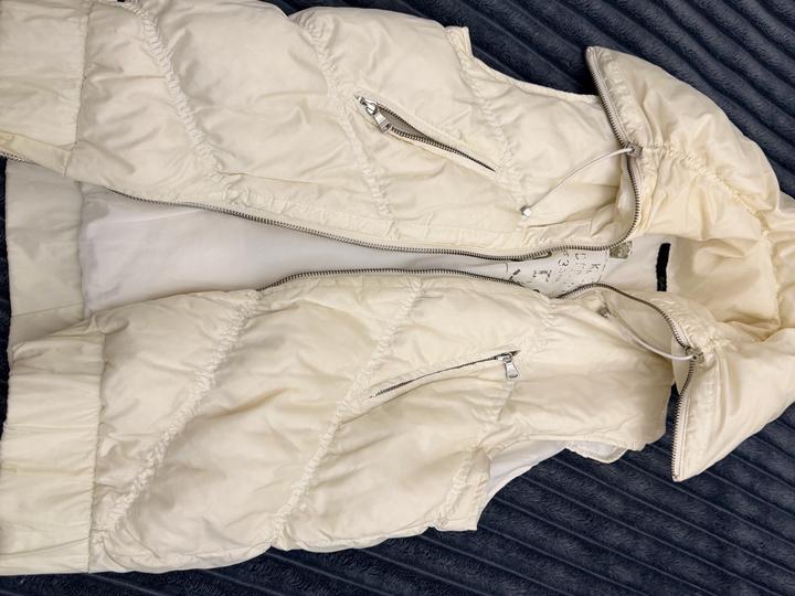 Молочного цвета ,Дутая безрукавка,с высоким воротником с утяжкой,очень стильная Артикул: 591926
