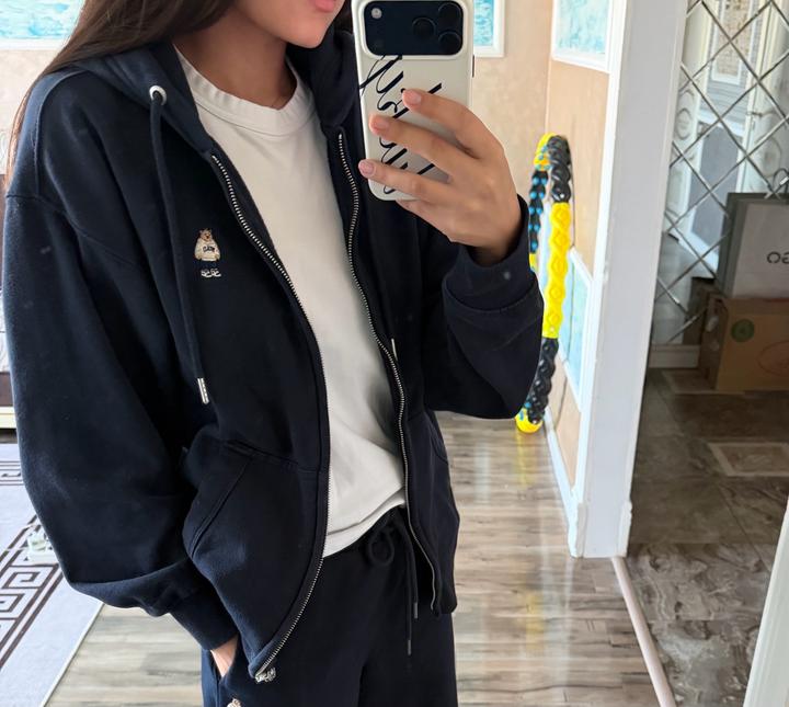 Зипка Whoau в синем цвете. Внутри флис. Размер S, оуверсайз. Носила пару раз. Удобно для вечерних прогулок. Продаю только потому что большая стала Артикул: 592031