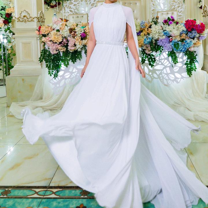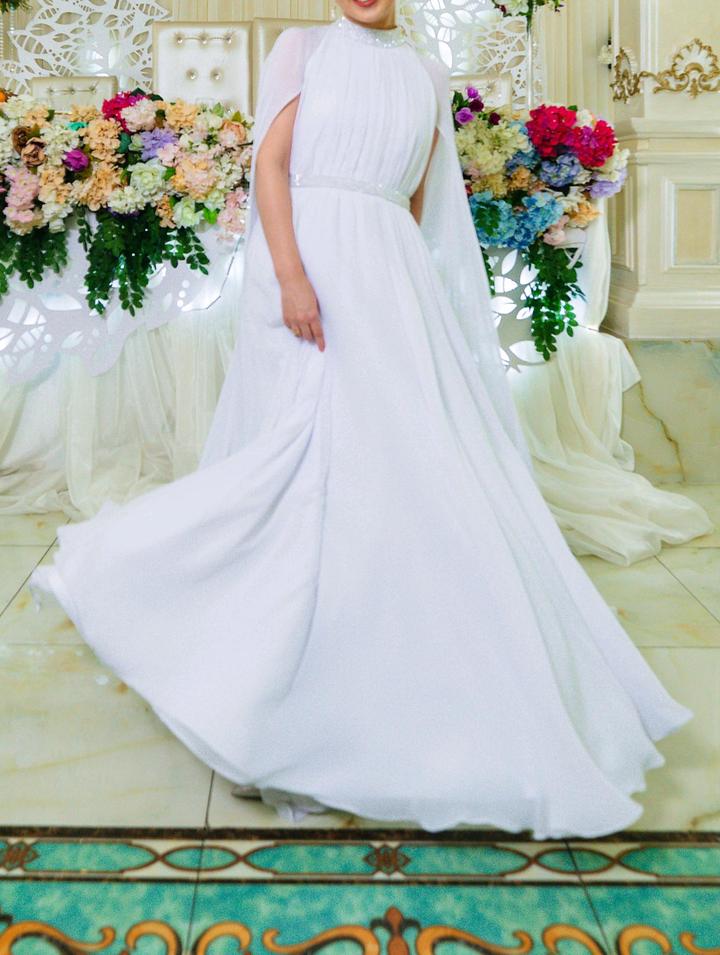 🌿 Материал: легкий и струящийся шифон 📏 Размер: S/M 👗 Состояние: отличное ✨ Особенности: А-силуэт, подчеркивающий фигуру и создающий элегантный образ. Длинные, летящие рукава, добавляющие воздушности. Сшито на заказ, ворот и съёмный ремень из ручной работы (камни Swarovski). Артикул: 592059