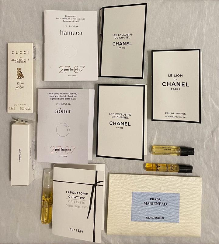 12 пробников (миниатюр) люксовых и нишевых ароматов. Chanel Le Lion, edp, 1,5мл. Chanel Sykomore, edp, 1,5мл. Chanel Jersey, edp, 1,5мл. 2+7### ### ## ##мл. Laboratorio Olfattivo Noblige, edp, 1мл. Gucci, The Alchemist’s Garden Tears of Iris, edp, 1,5мл. Артикул: 592100