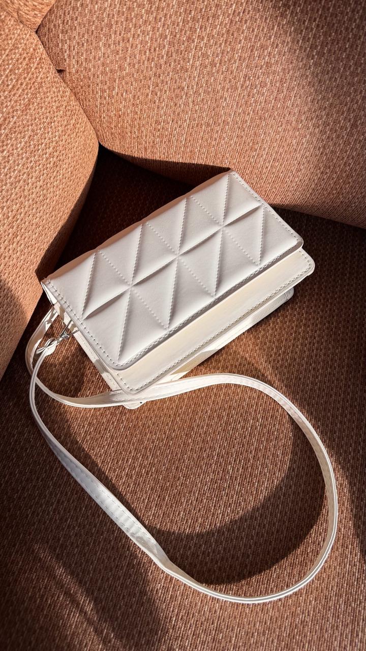 Локаничная белая сумочка. Кросбоди, вместительная, закрывается на магнитах. Артикул: 592105