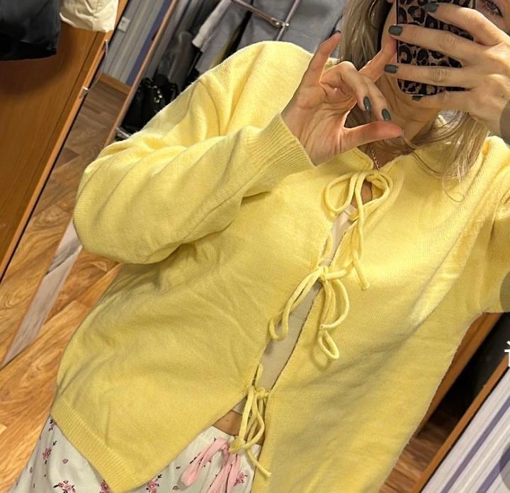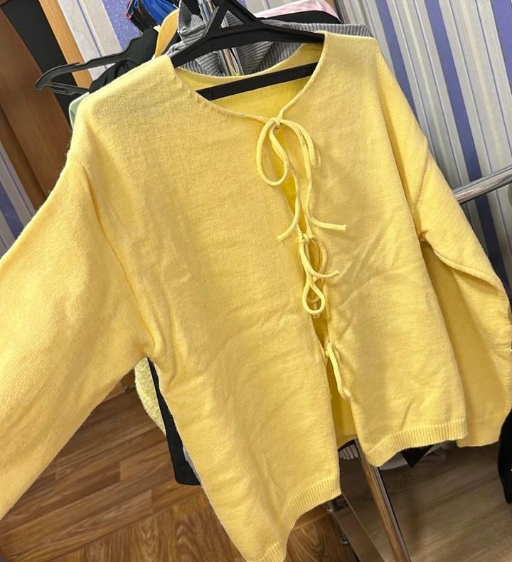 Желтый кардиган с завязками в отличном качестве Артикул: 592144