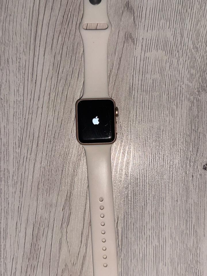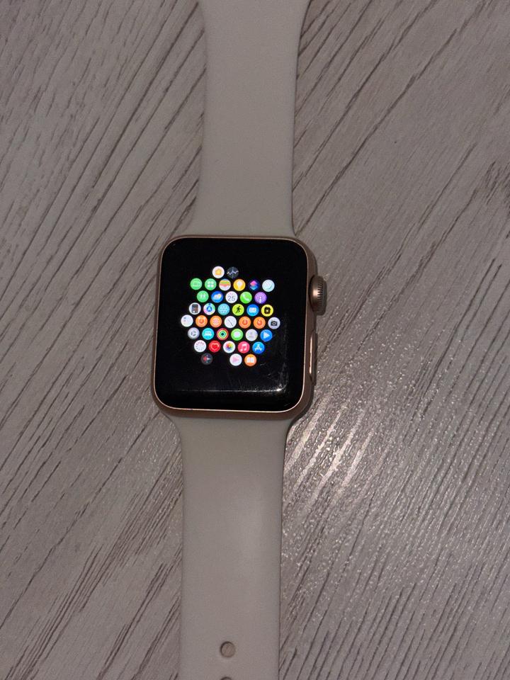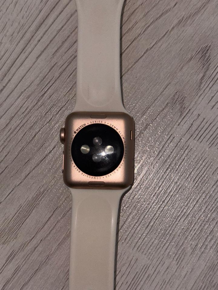 series 3, 38mm Состояние хорошая, все идеально работает Даже можно измерение частоты сердечных сокращений Есть царапины Цвет розовое золото Аккумлятор тоже хорошо полного заряда хватает на 10 часов Оригинал! Артикул: 592161