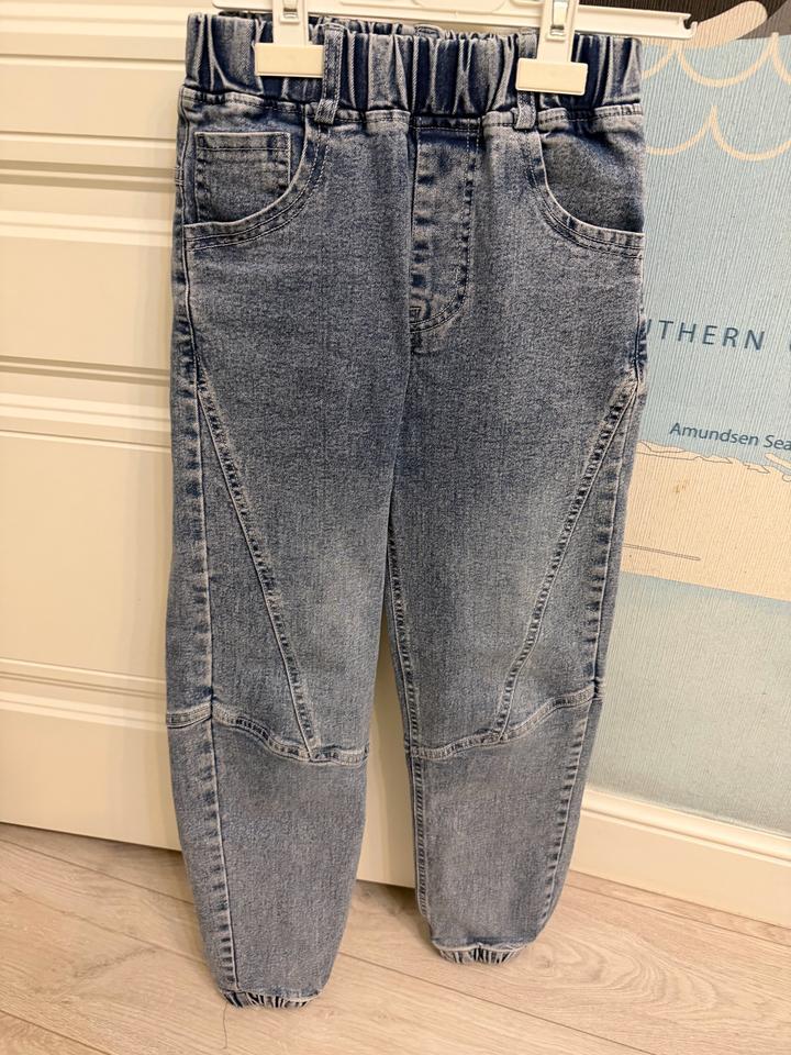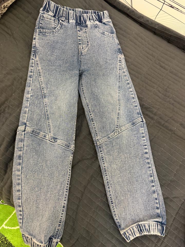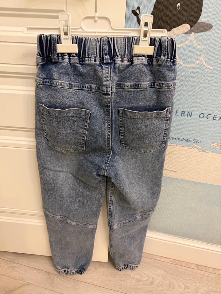 Джинсы на резинке для мальчика, где то на 128-134, 8-9 лет в хорошем состоянии. Покупали на озон. Артикул: 592227