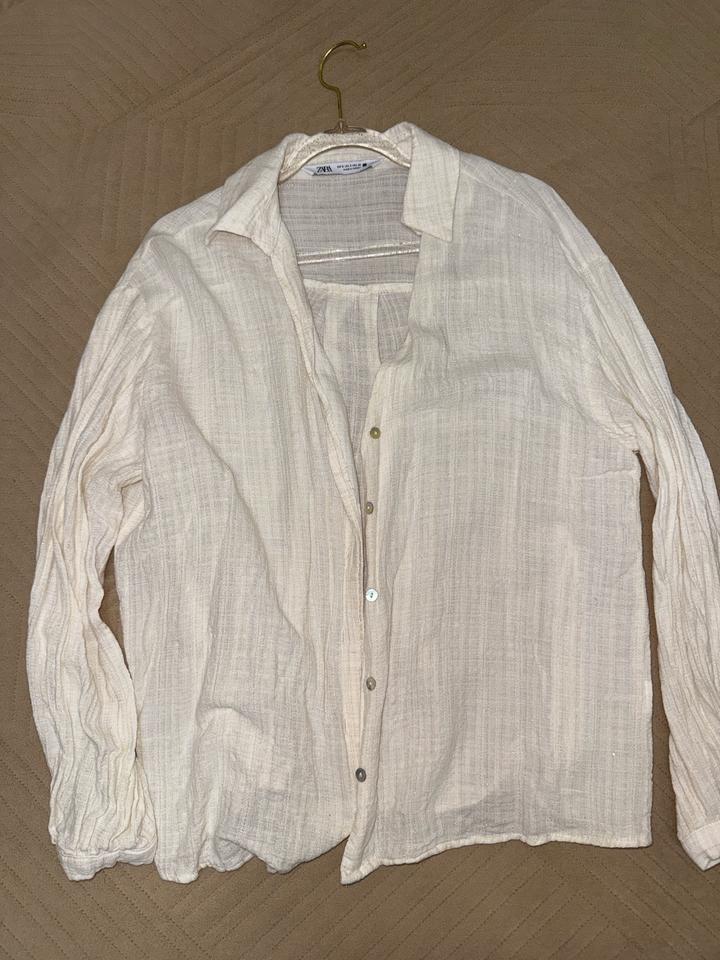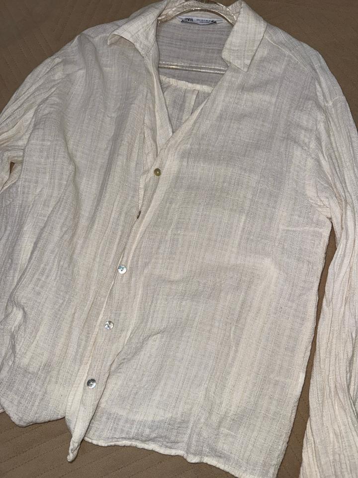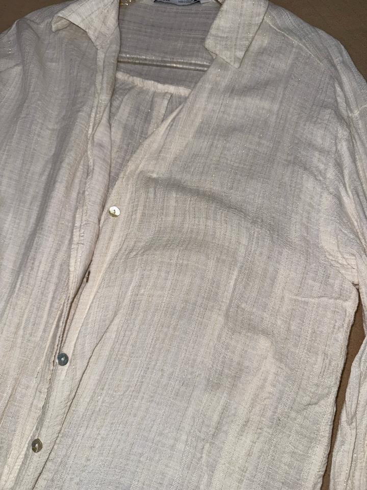 Очень нежная рубашка с золотистыми нитками, материал лён, очень приятная на теле, состояние хорошее Артикул: 592243