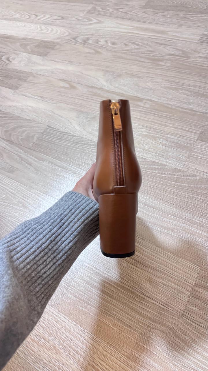 Ботильоны из натуральной кожи. Каблук устойчивый. Надела пару раз, но оказались немного малы на 23 см. Будут комфортны на 22-22.5 см. Красивый карамельный цвет. Артикул: 592246